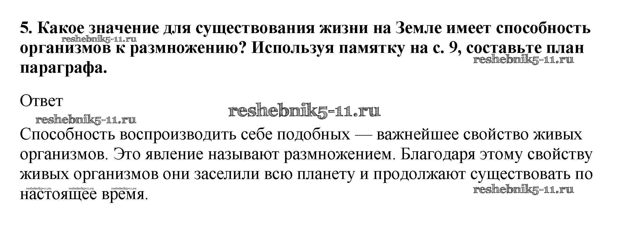 Биология за 5-6 класс Пасечник Учебник Линия жизни Просвещение вопрос 5