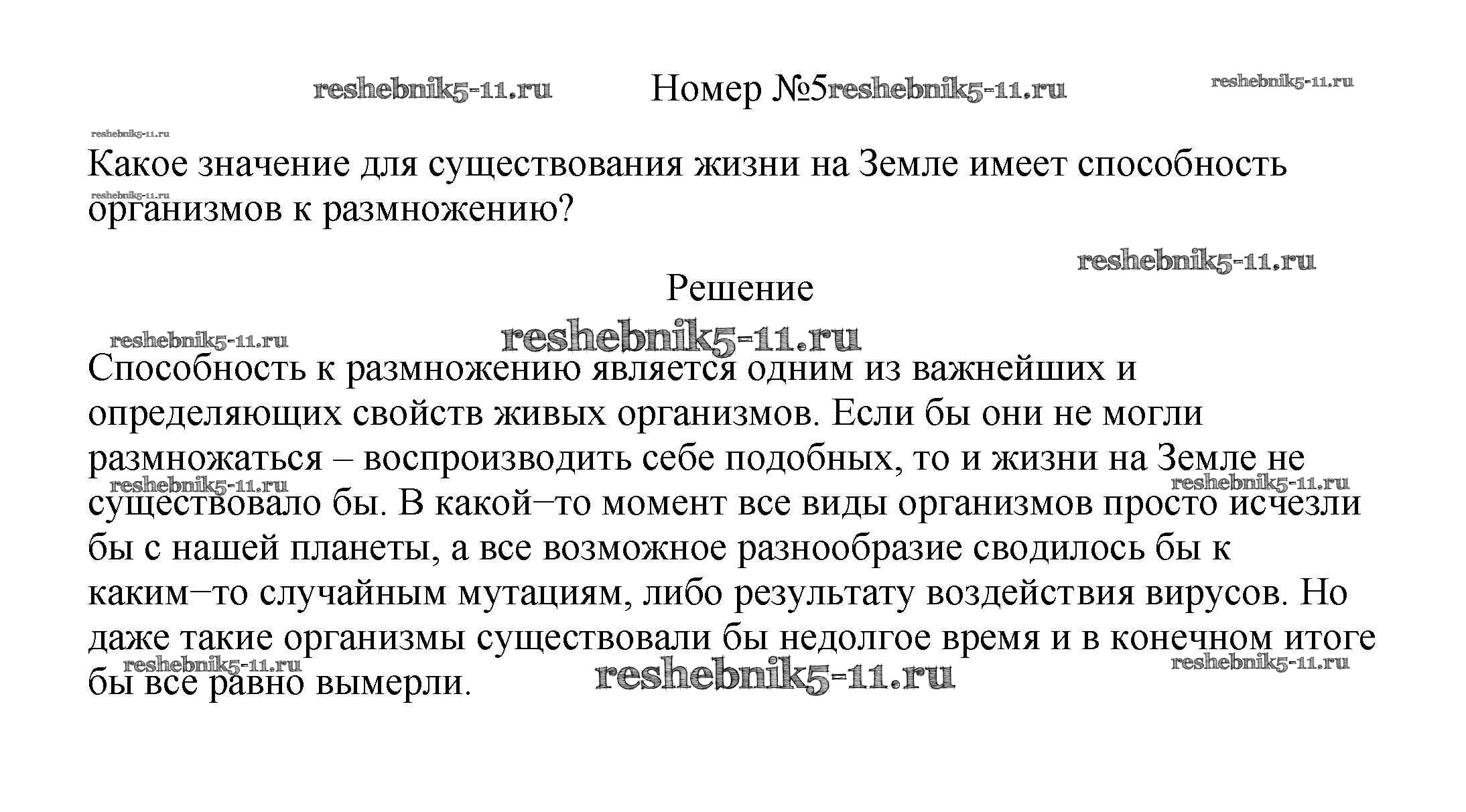 Готовая домашняя работа с ответами по Биологии за 5, 6 класс Пасечник, Суматохин, Калинова, Гапонюк Учебник Линия жизни Просвещение 2020 ФГОС - Вопросы 5