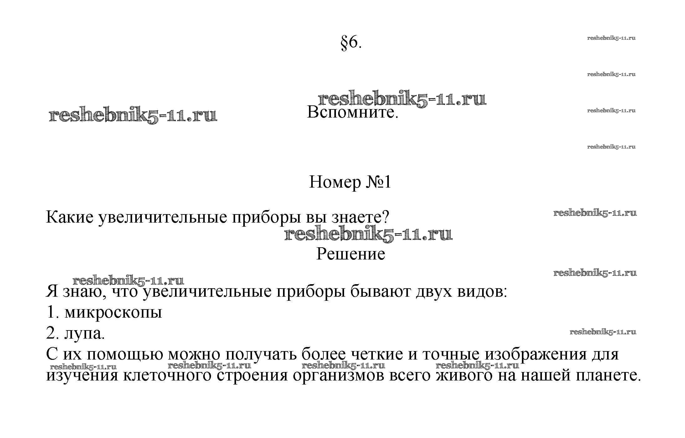 Готовая домашняя работа с ответами по Биологии за 5, 6 класс Пасечник, Суматохин, Калинова, Гапонюк Учебник Линия жизни Просвещение 2020 ФГОС - Вспомните 1