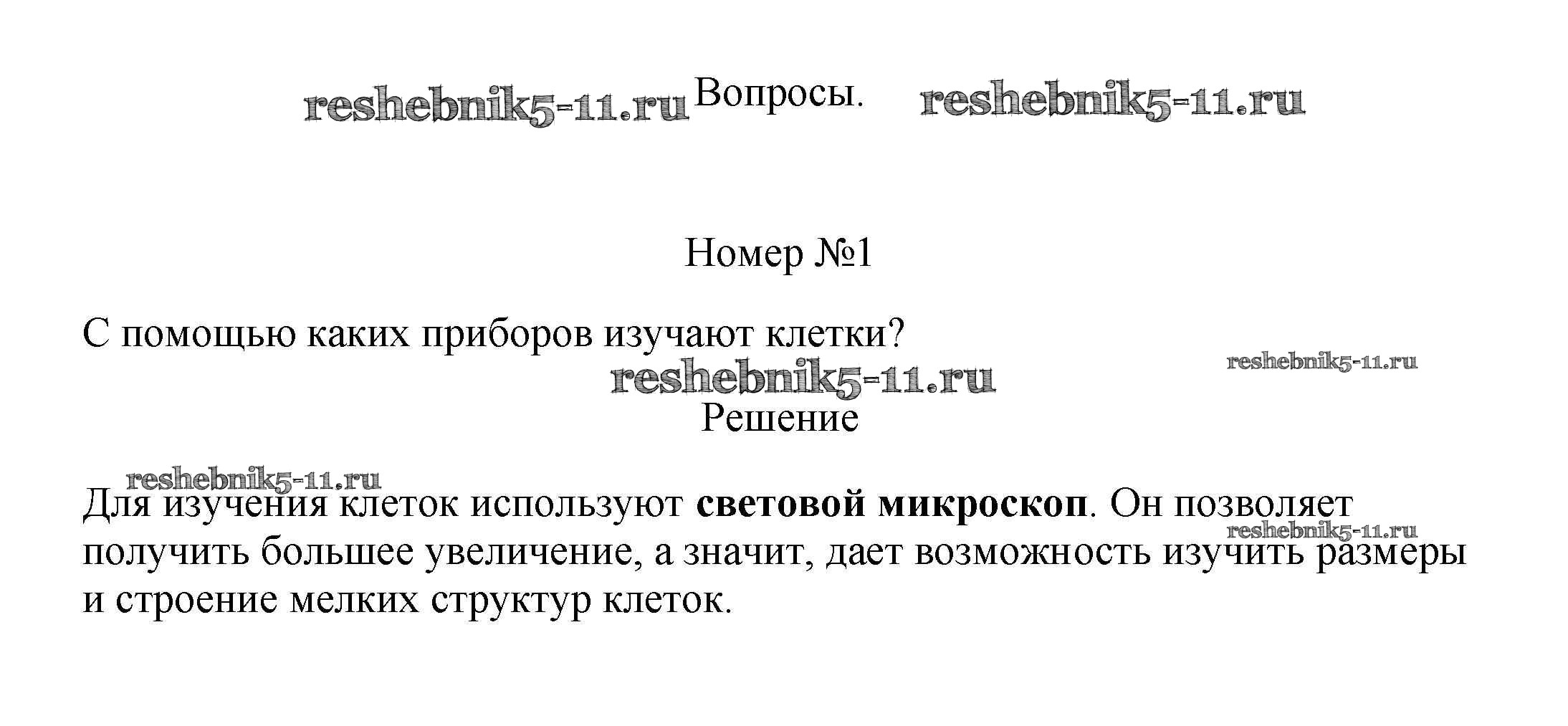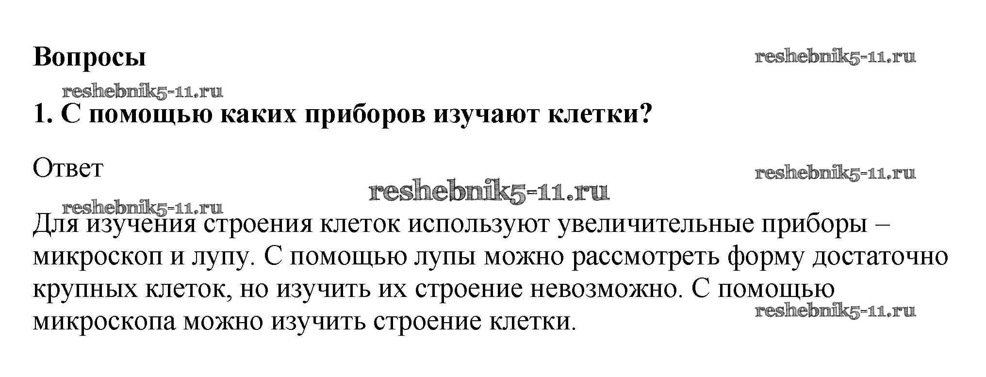 Готовая домашняя работа с ответами по Биологии за 5, 6 класс Пасечник, Суматохин, Калинова, Гапонюк Учебник Линия жизни Просвещение 2020 ФГОС - Вопросы 1