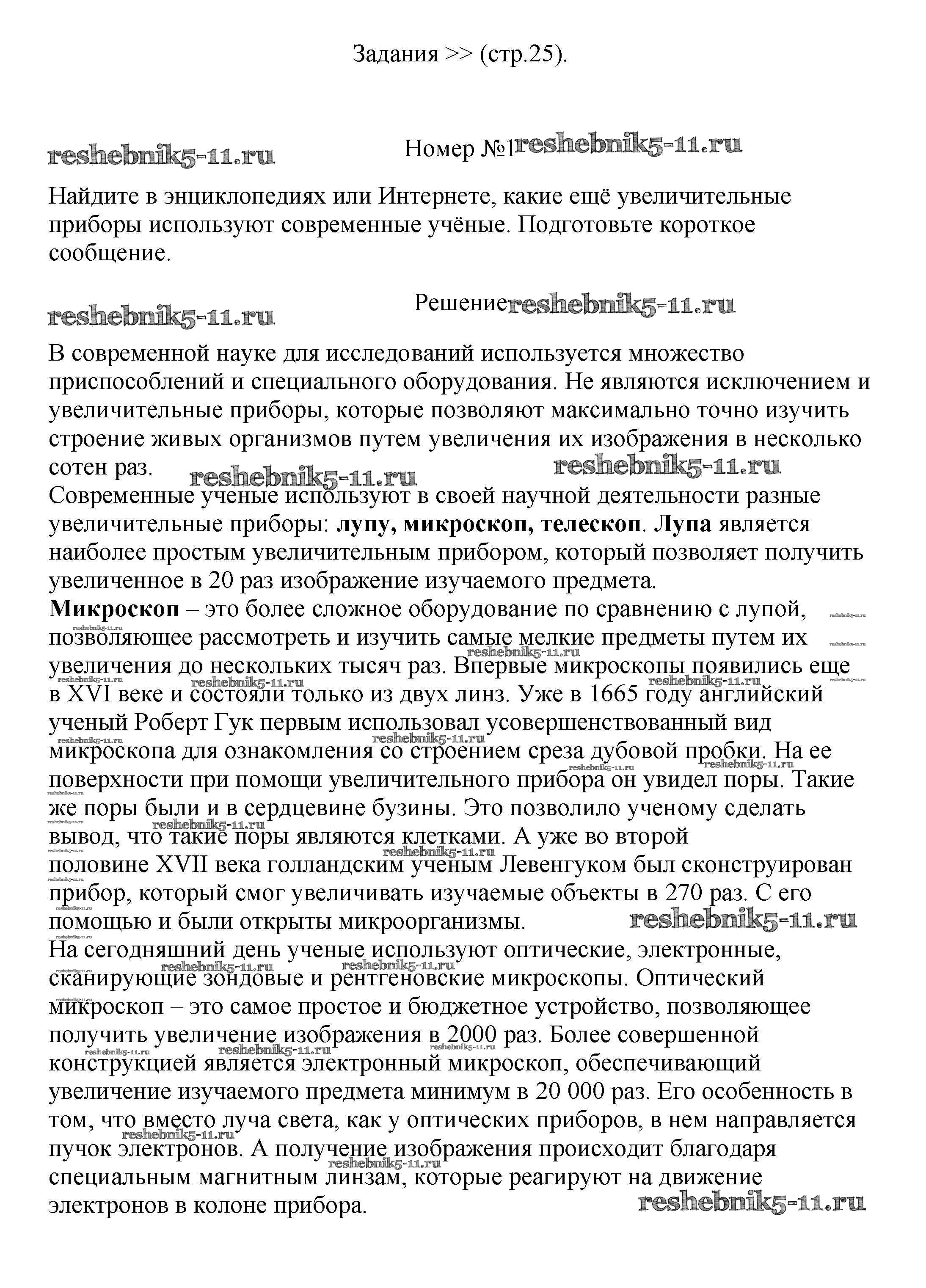 Готовая домашняя работа с ответами по Биологии за 5, 6 класс Пасечник, Суматохин, Калинова, Гапонюк Учебник Линия жизни Просвещение 2020 ФГОС - Задания стр.25
