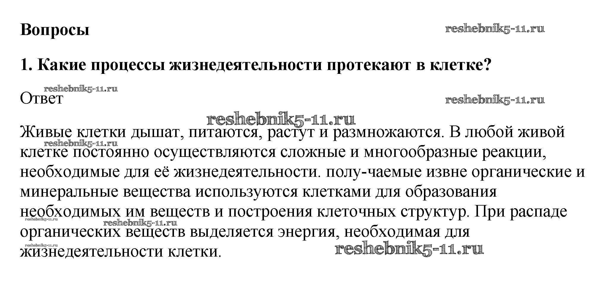 Готовая домашняя работа с ответами по Биологии за 5, 6 класс Пасечник, Суматохин, Калинова, Гапонюк Учебник Линия жизни Просвещение 2020 ФГОС - Вопросы 1