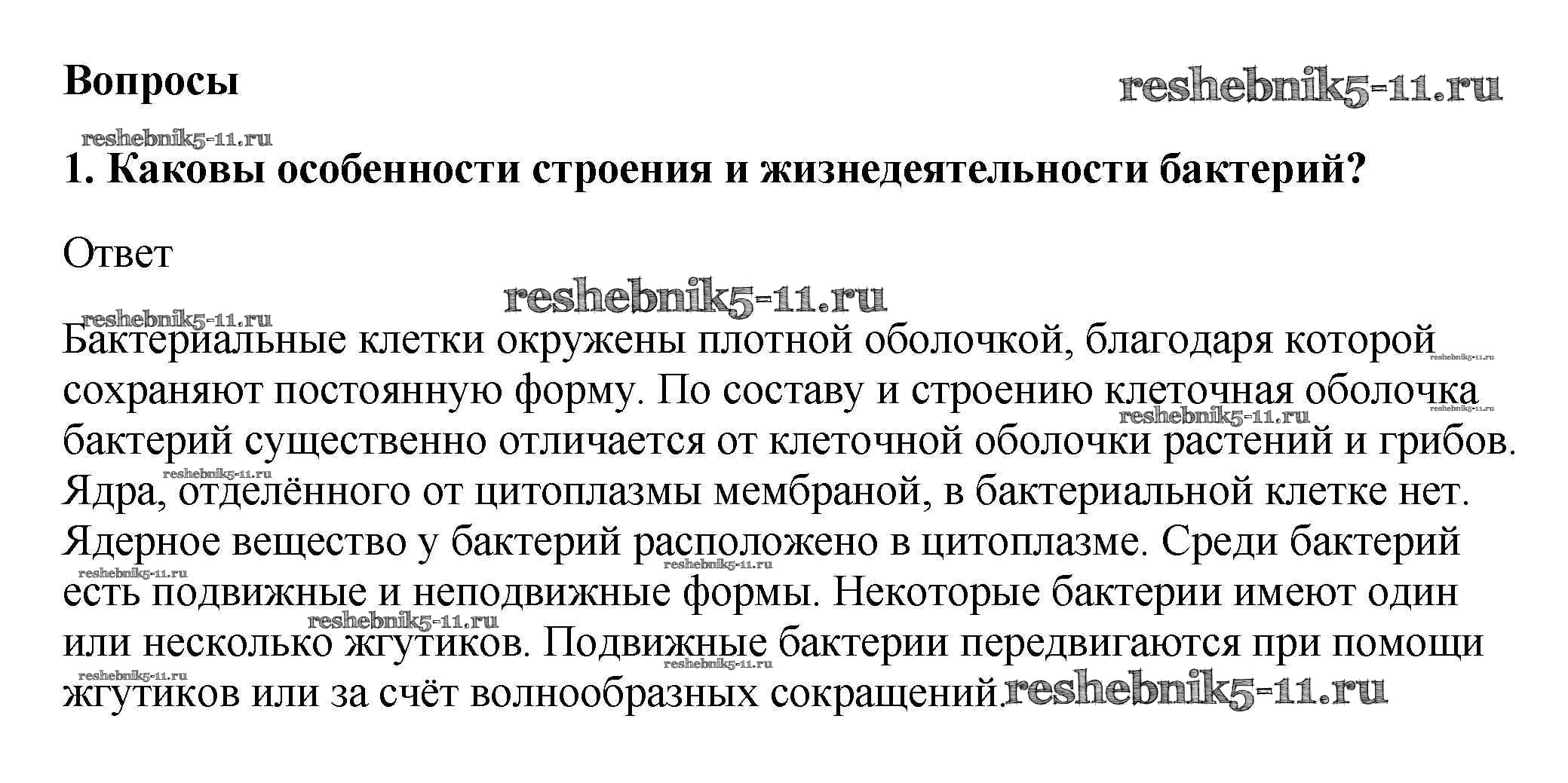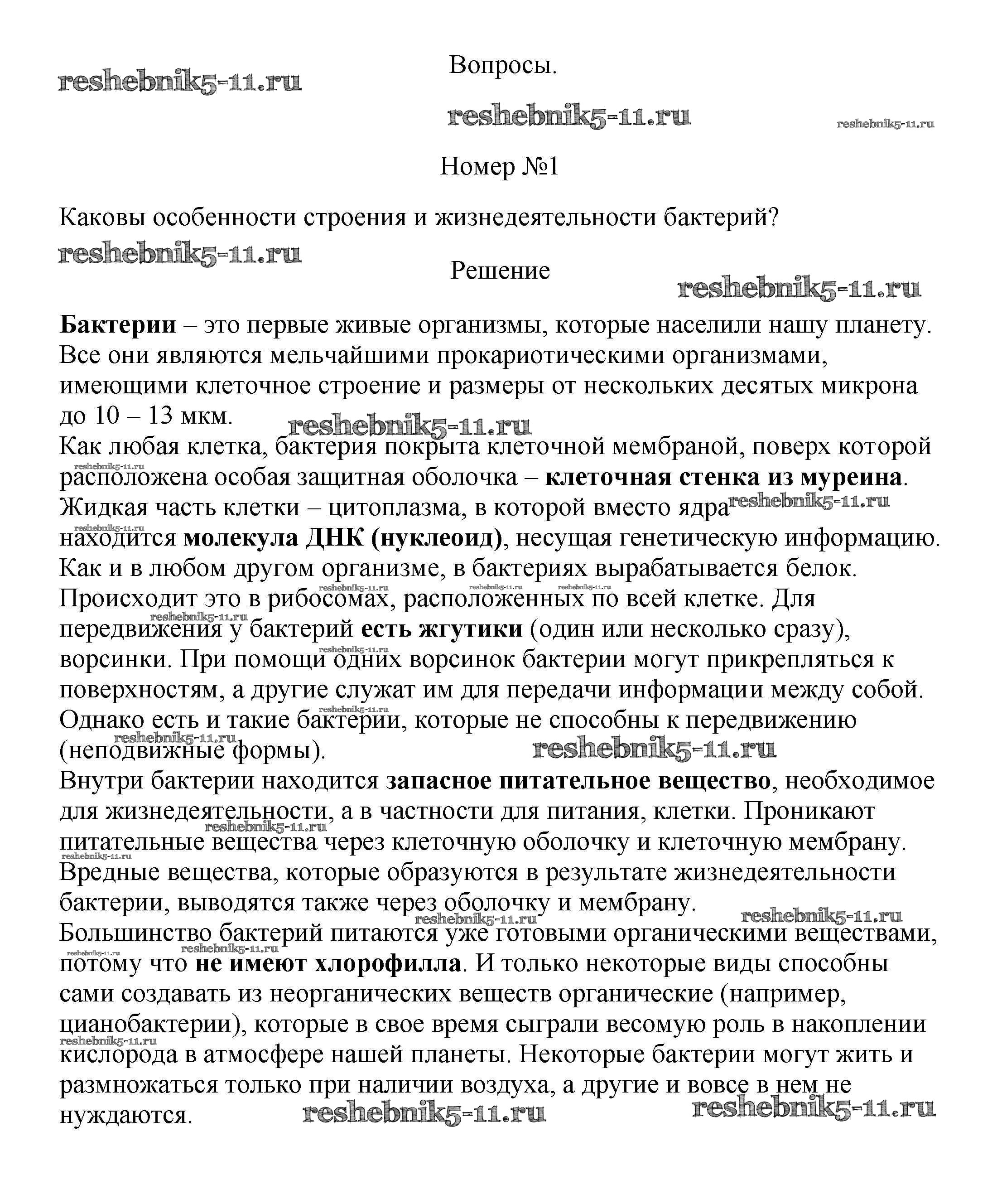 Готовая домашняя работа с ответами по Биологии за 5, 6 класс Пасечник, Суматохин, Калинова, Гапонюк Учебник Линия жизни Просвещение 2020 ФГОС - Вопросы 1