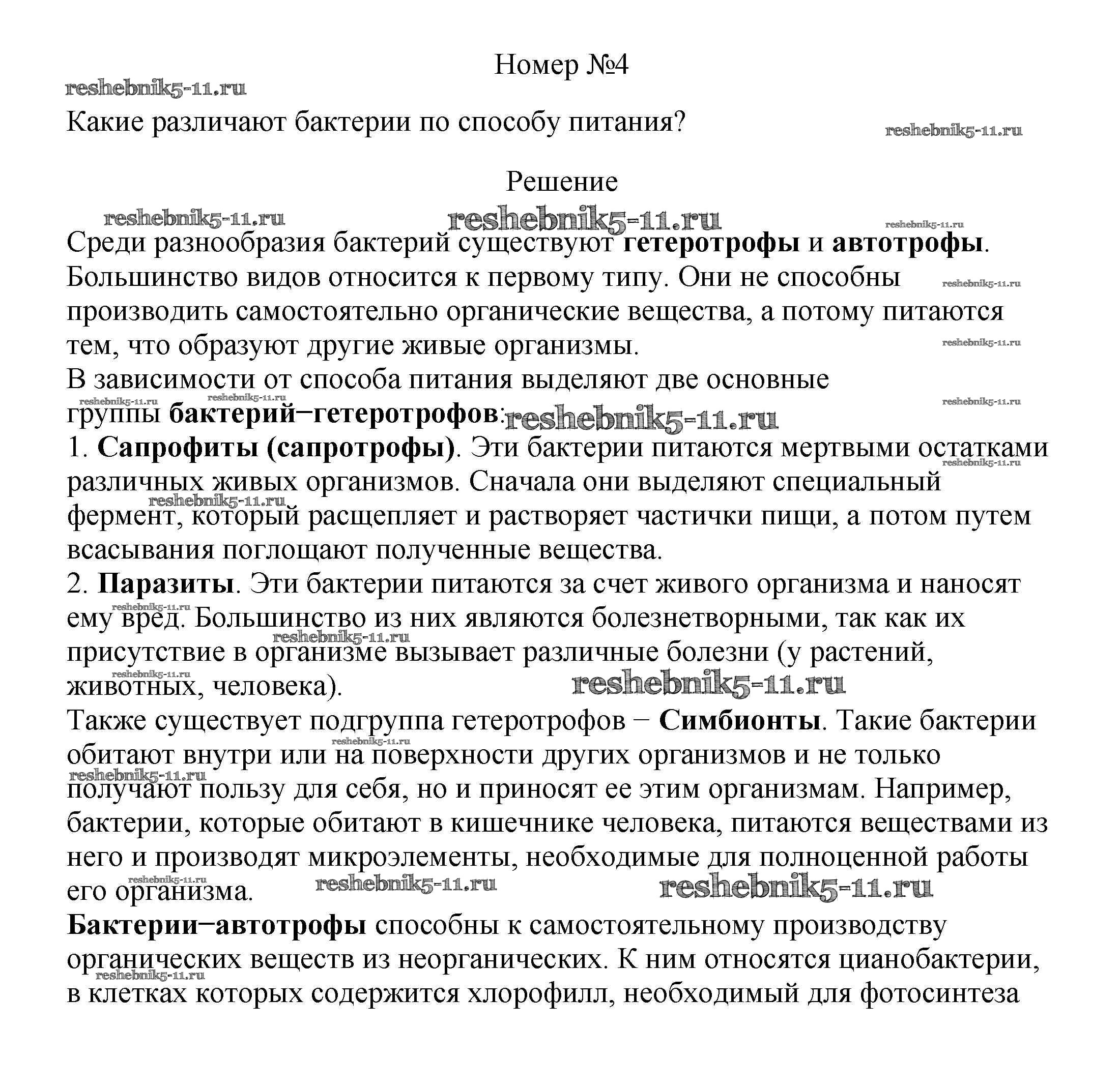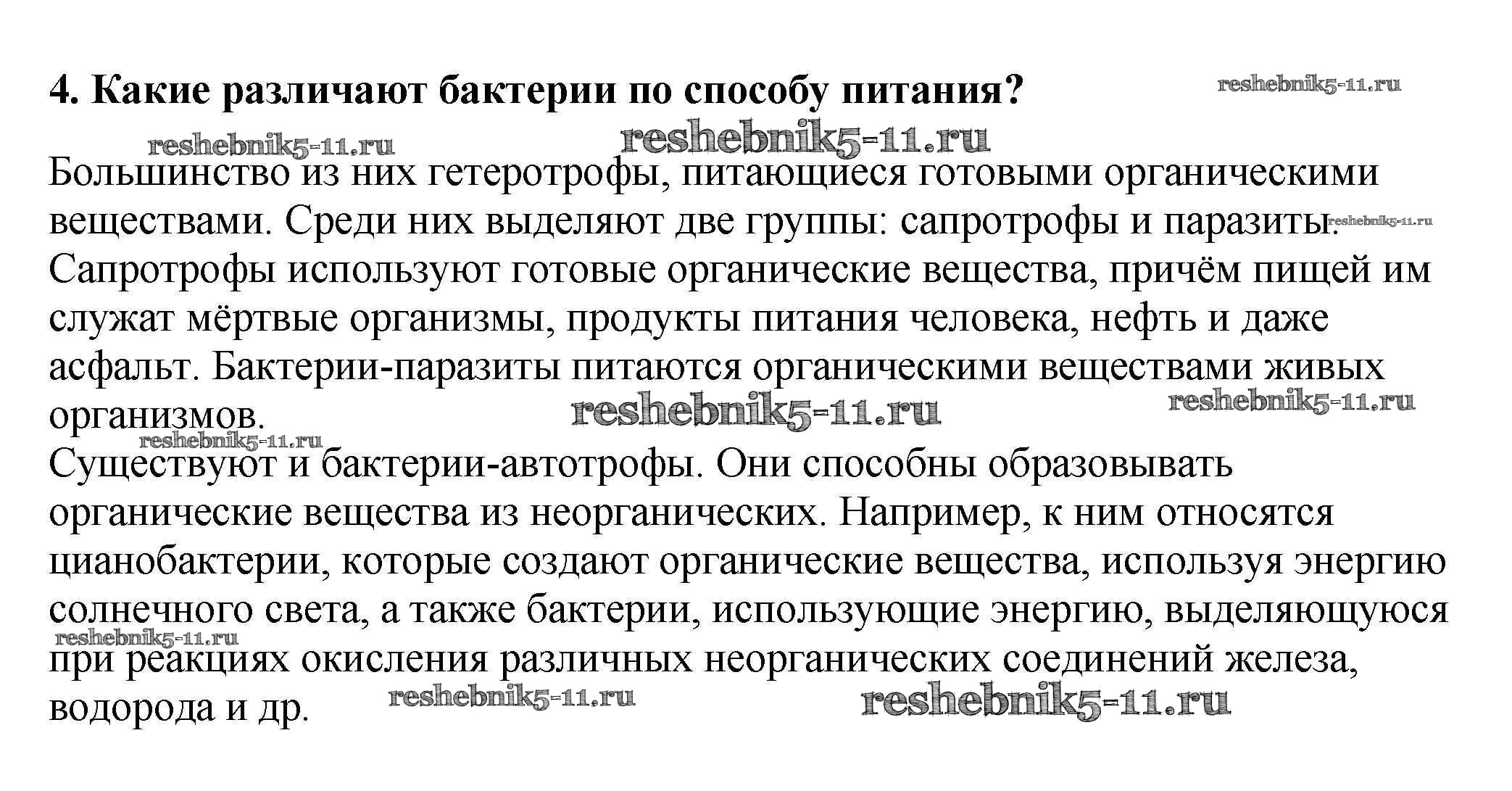 Готовая домашняя работа с ответами по Биологии за 5, 6 класс Пасечник, Суматохин, Калинова, Гапонюк Учебник Линия жизни Просвещение 2020 ФГОС - Вопросы 4