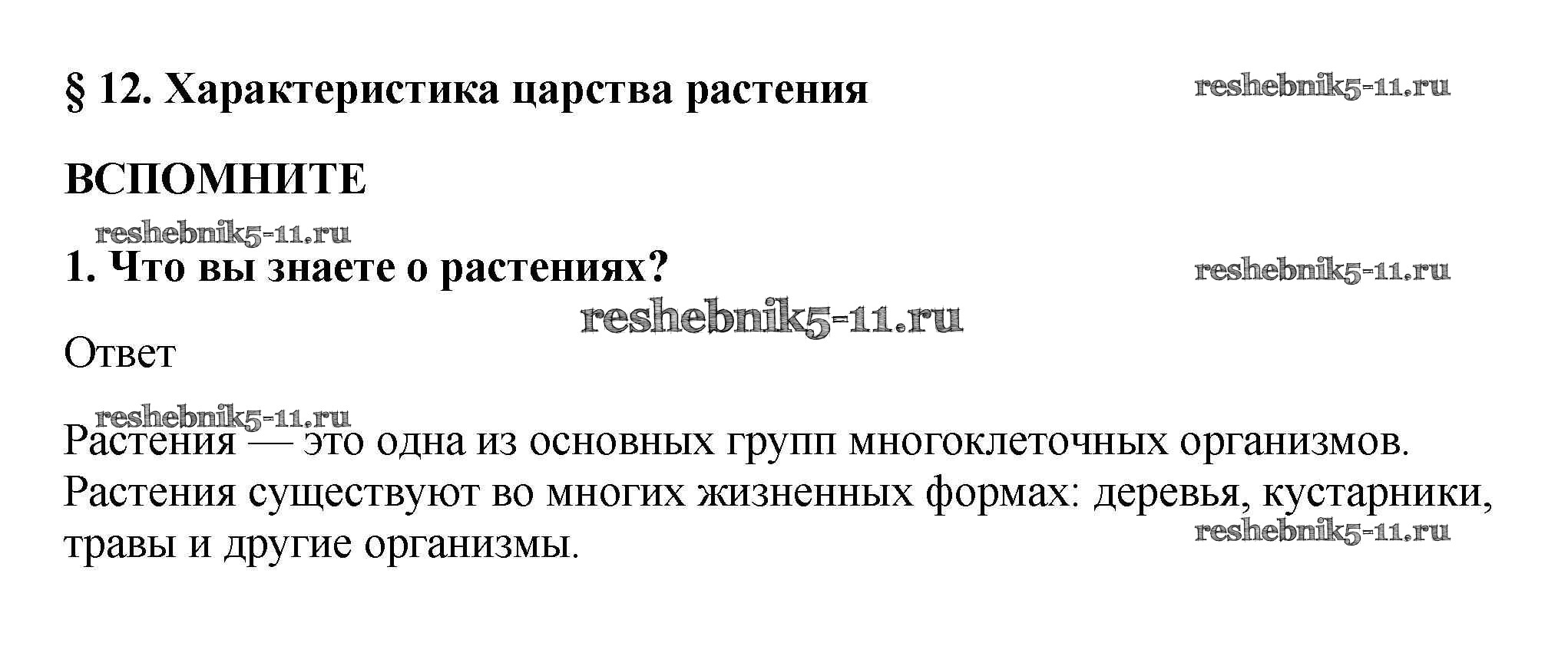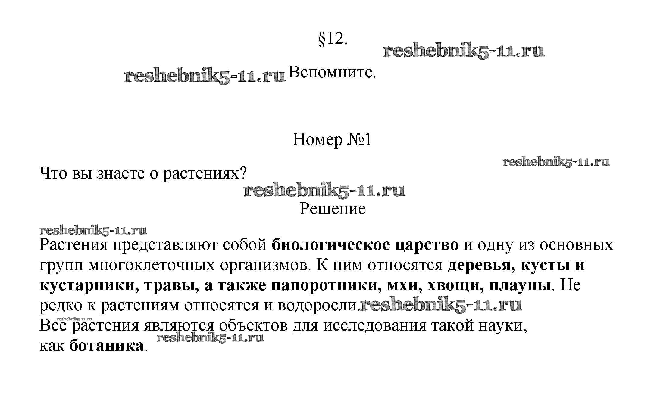 Готовая домашняя работа с ответами по Биологии за 5, 6 класс Пасечник, Суматохин, Калинова, Гапонюк Учебник Линия жизни Просвещение 2020 ФГОС - Вспомните 1
