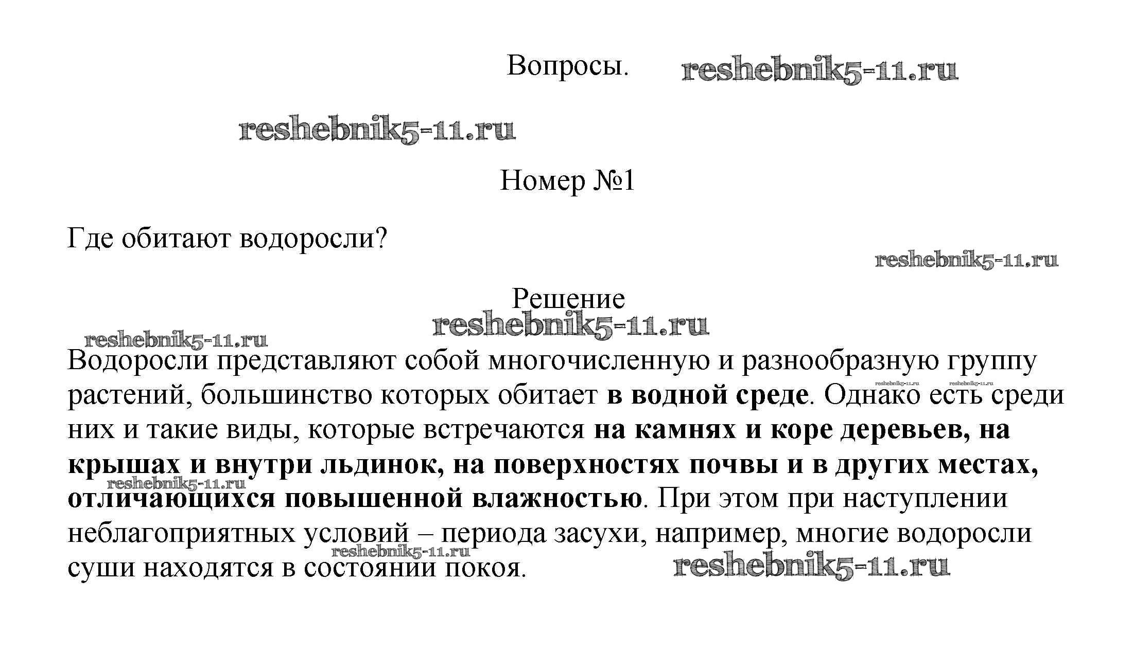 Готовая домашняя работа с ответами по Биологии за 5, 6 класс Пасечник, Суматохин, Калинова, Гапонюк Учебник Линия жизни Просвещение 2020 ФГОС - Вопросы 1