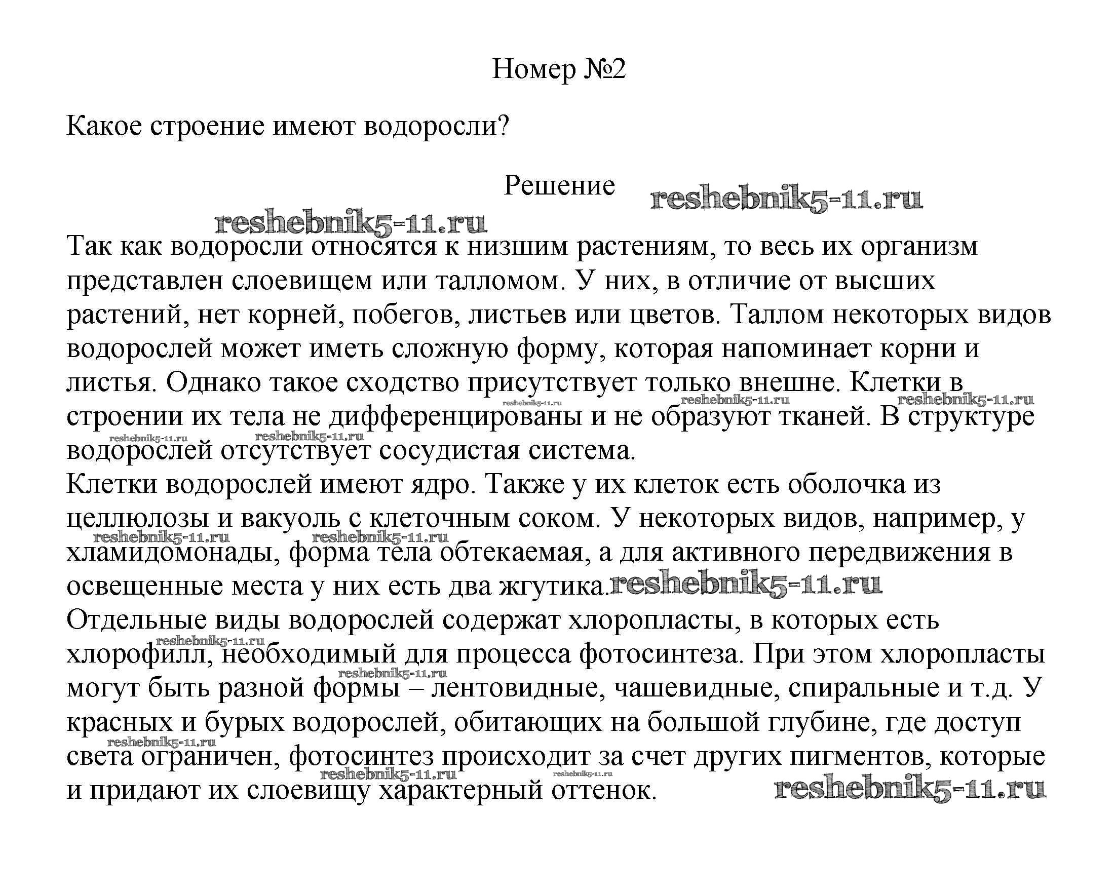 Готовая домашняя работа с ответами по Биологии за 5, 6 класс Пасечник, Суматохин, Калинова, Гапонюк Учебник Линия жизни Просвещение 2020 ФГОС - Вопросы 2