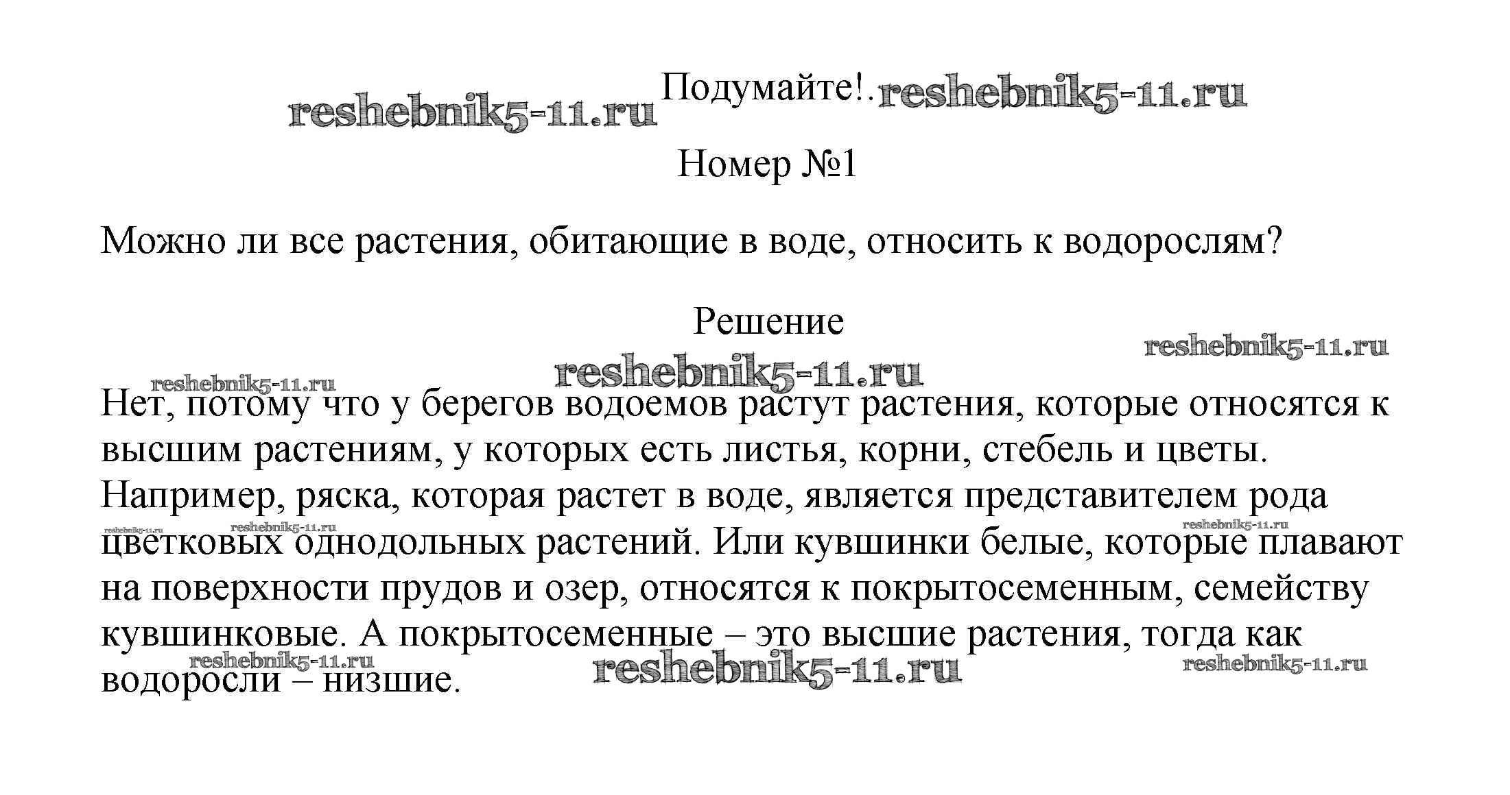 Готовая домашняя работа с ответами по Биологии за 5, 6 класс Пасечник, Суматохин, Калинова, Гапонюк Учебник Линия жизни Просвещение 2020 ФГОС - Подумайте 1