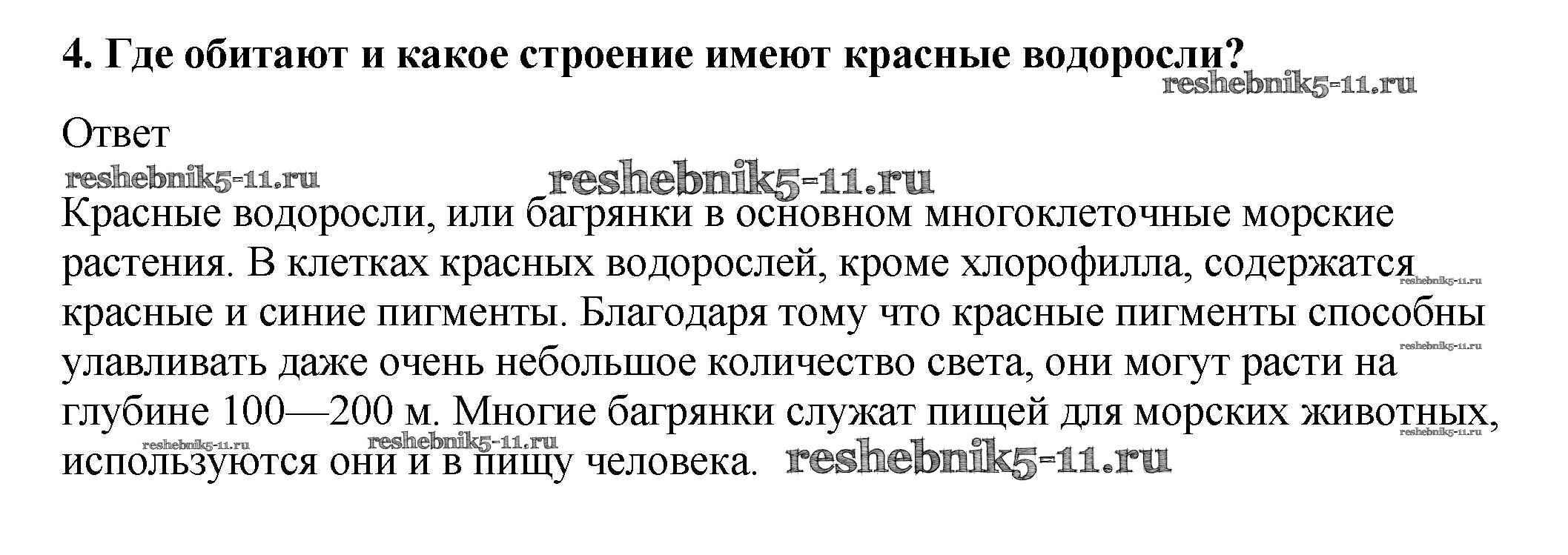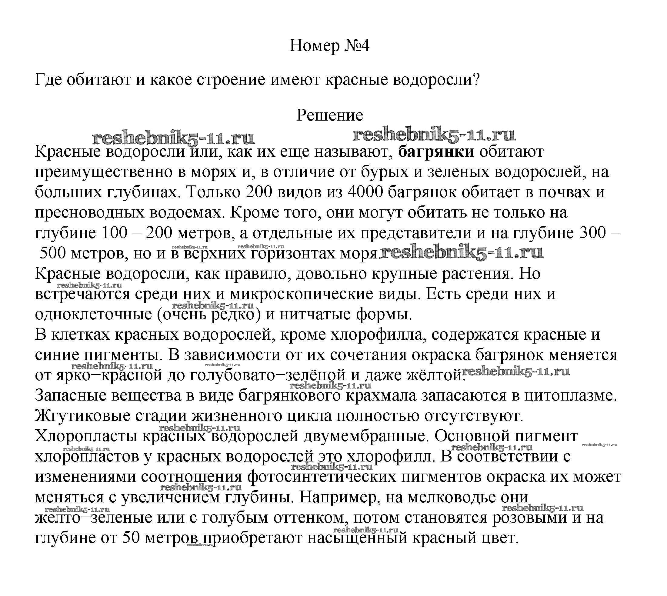 Готовая домашняя работа с ответами по Биологии за 5, 6 класс Пасечник, Суматохин, Калинова, Гапонюк Учебник Линия жизни Просвещение 2020 ФГОС - Вопросы 4