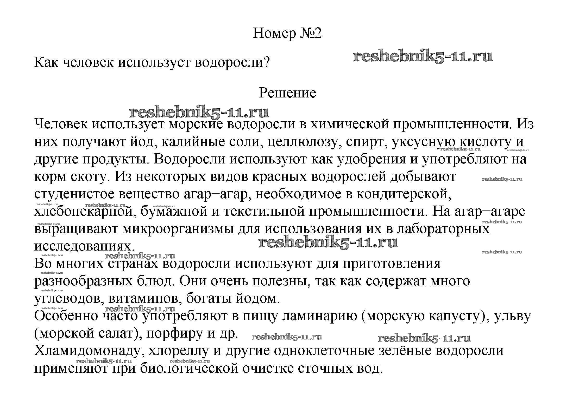 Готовая домашняя работа с ответами по Биологии за 5, 6 класс Пасечник, Суматохин, Калинова, Гапонюк Учебник Линия жизни Просвещение 2020 ФГОС - Вопросы 2