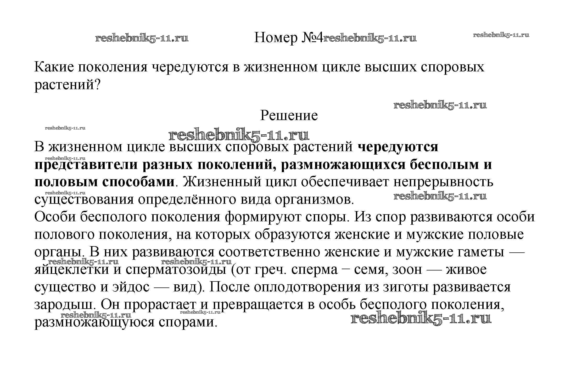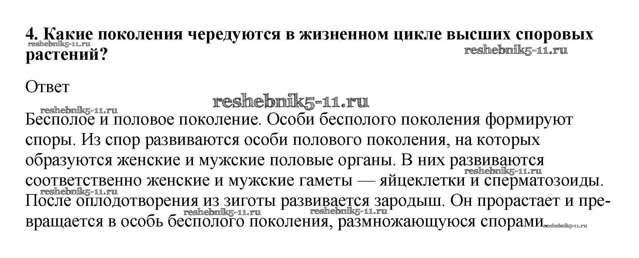 Готовая домашняя работа с ответами по Биологии за 5, 6 класс Пасечник, Суматохин, Калинова, Гапонюк Учебник Линия жизни Просвещение 2020 ФГОС - Вопросы 4