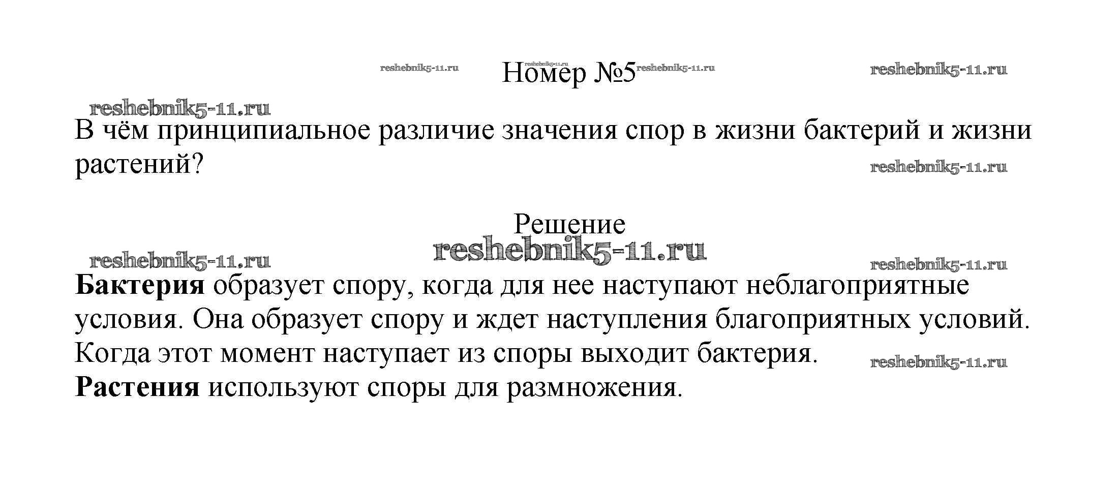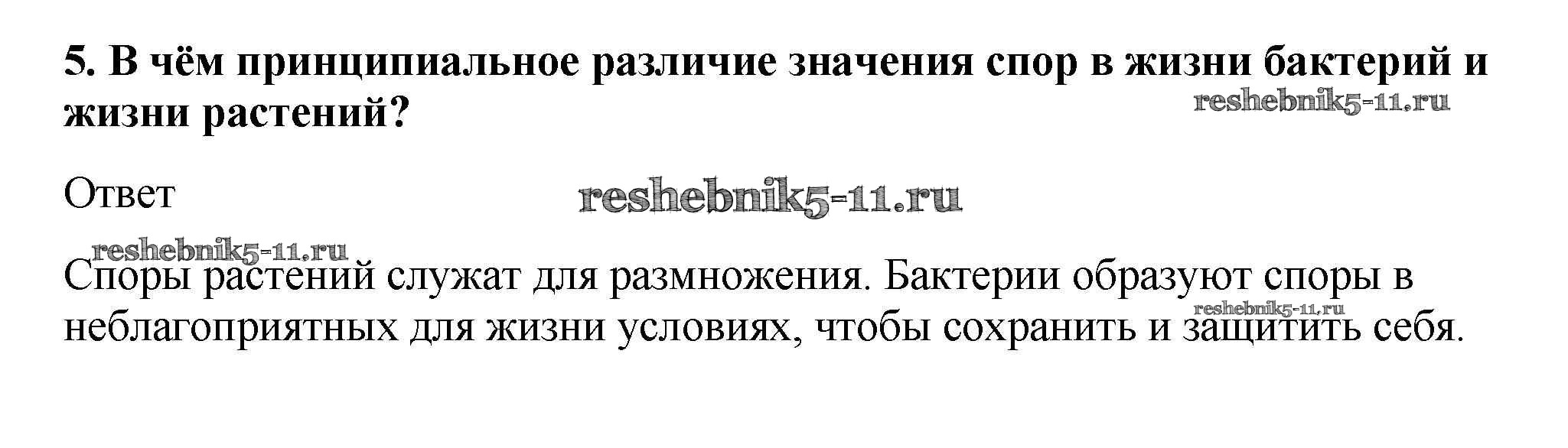 Готовая домашняя работа с ответами по Биологии за 5, 6 класс Пасечник, Суматохин, Калинова, Гапонюк Учебник Линия жизни Просвещение 2020 ФГОС - Вопросы 5