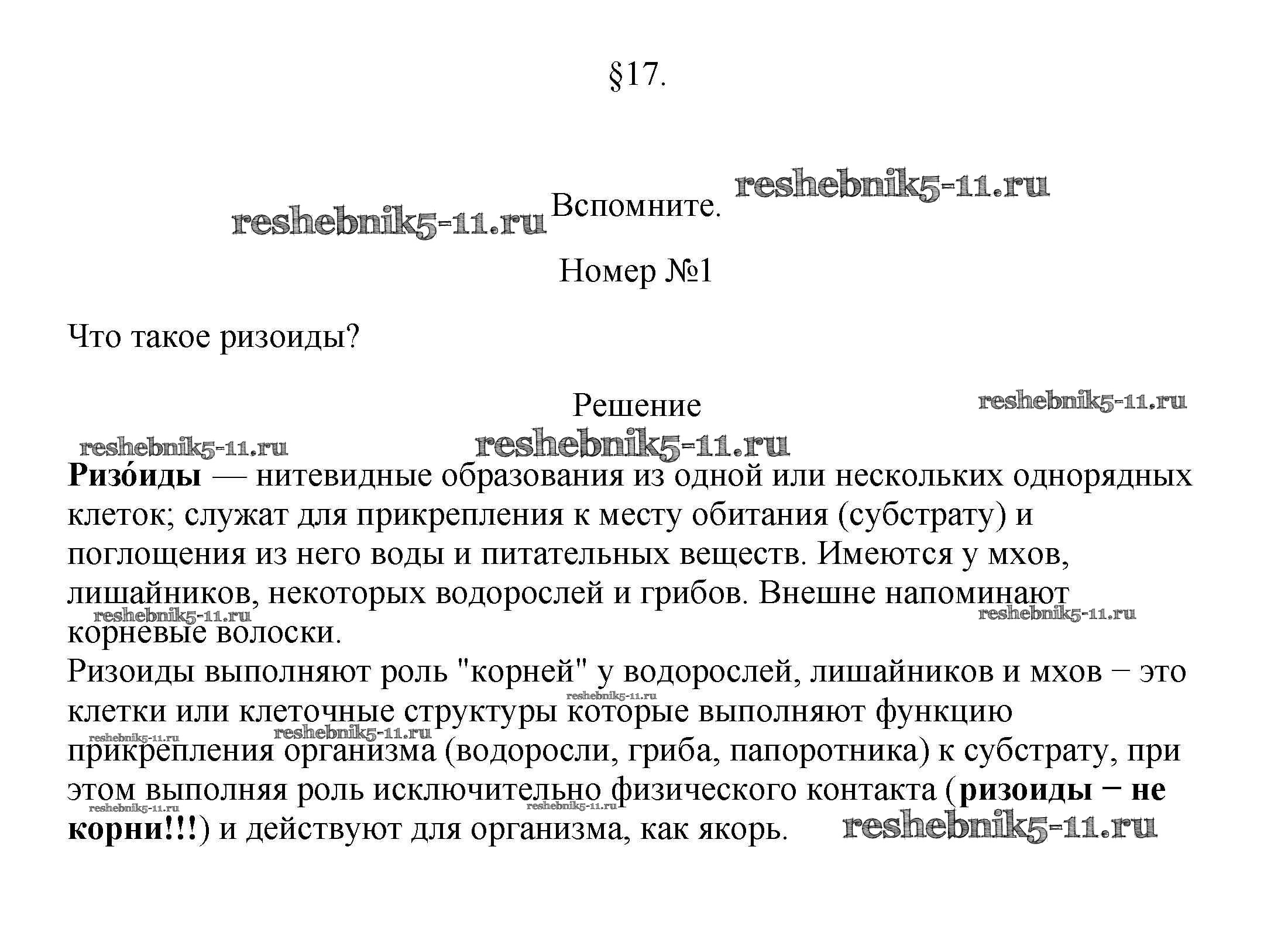Готовая домашняя работа с ответами по Биологии за 5, 6 класс Пасечник, Суматохин, Калинова, Гапонюк Учебник Линия жизни Просвещение 2020 ФГОС - Вспомните 1