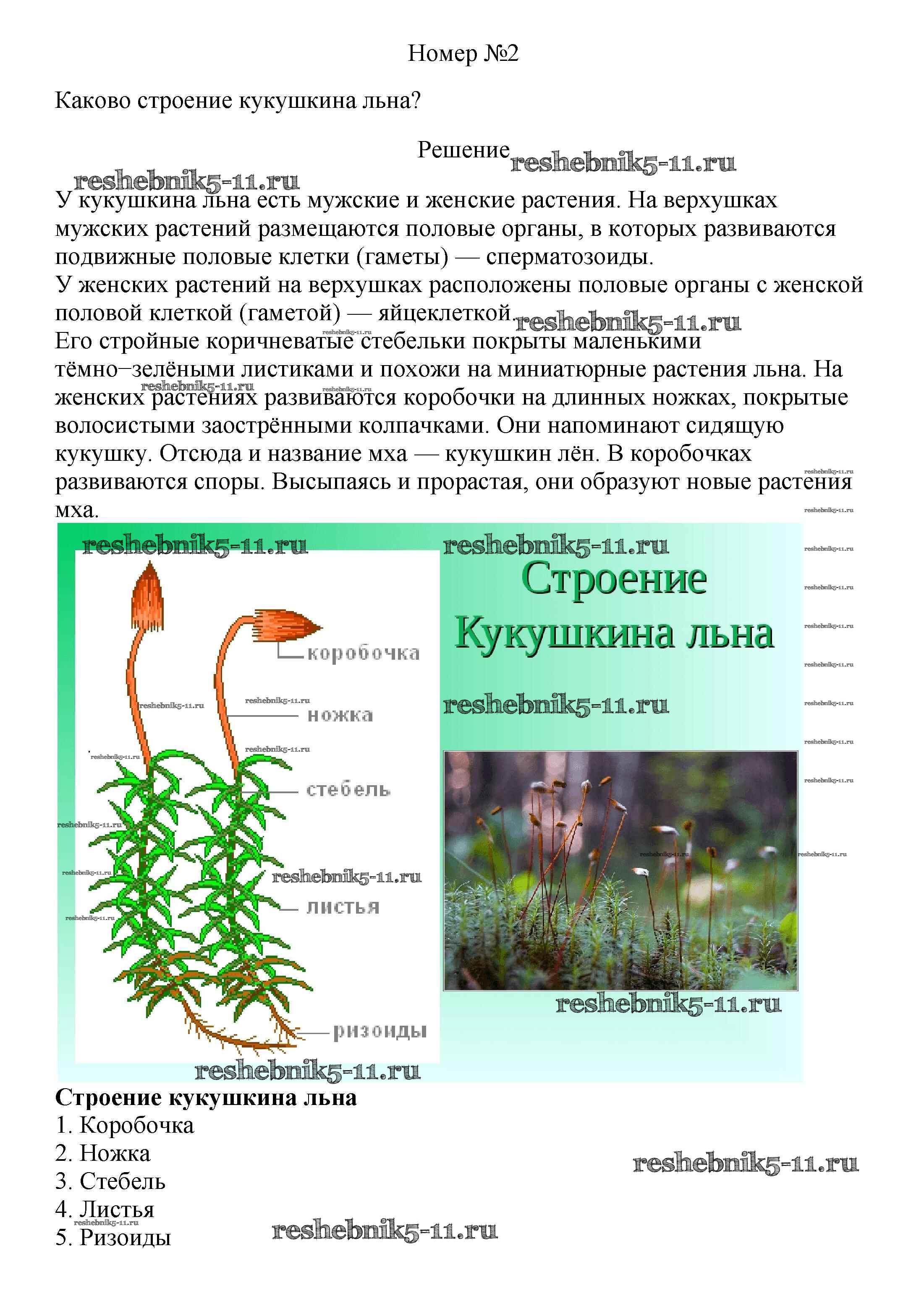 Готовая домашняя работа с ответами по Биологии за 5, 6 класс Пасечник, Суматохин, Калинова, Гапонюк Учебник Линия жизни Просвещение 2020 ФГОС - Вопросы 2
