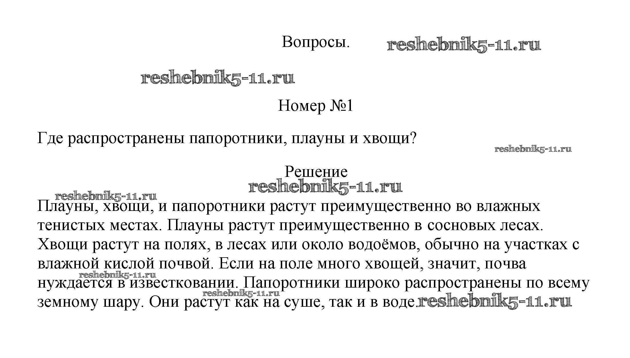 Готовая домашняя работа с ответами по Биологии за 5, 6 класс Пасечник, Суматохин, Калинова, Гапонюк Учебник Линия жизни Просвещение 2020 ФГОС - Вопросы 1
