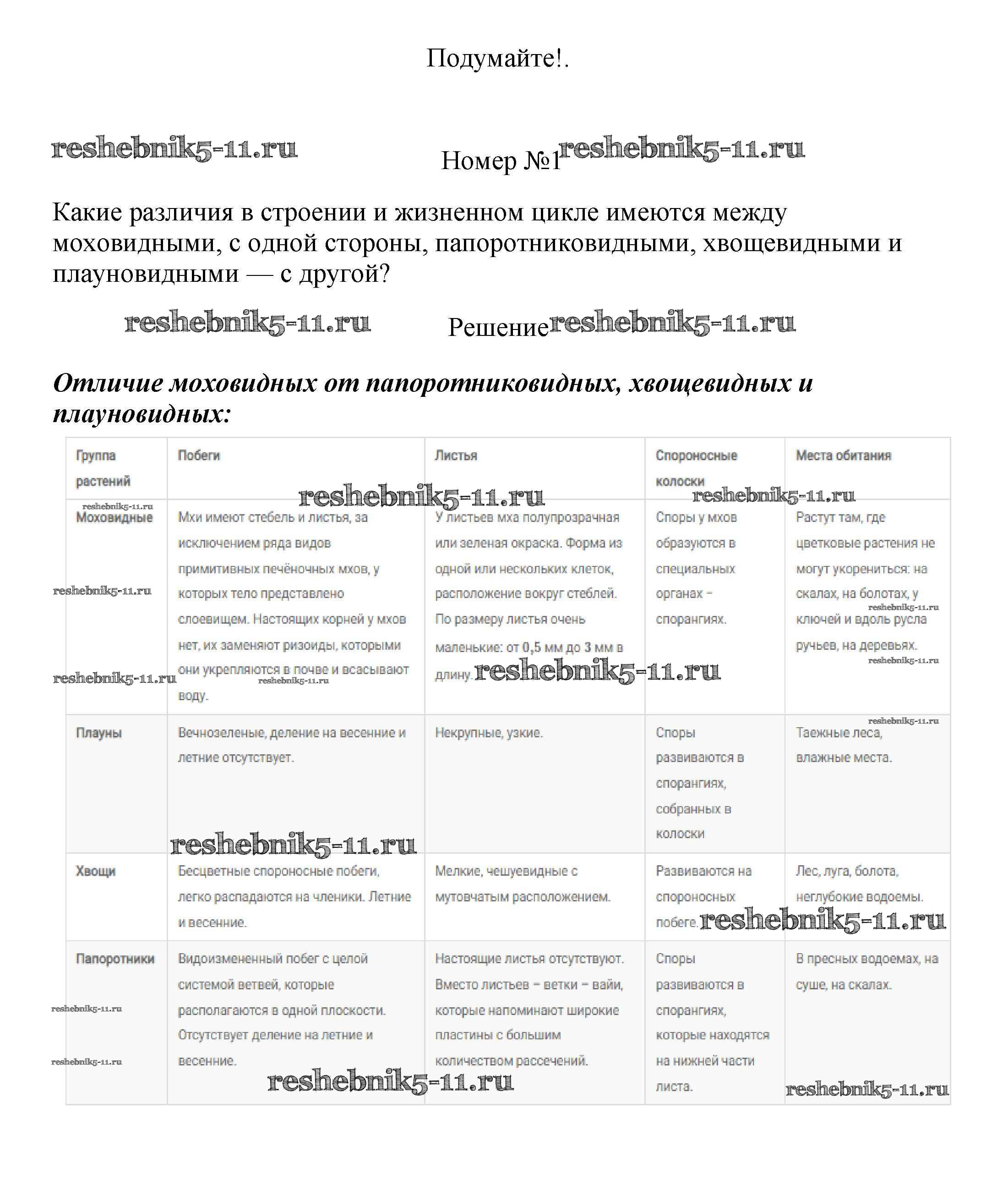 Готовая домашняя работа с ответами по Биологии за 5, 6 класс Пасечник, Суматохин, Калинова, Гапонюк Учебник Линия жизни Просвещение 2020 ФГОС - Подумайте 1