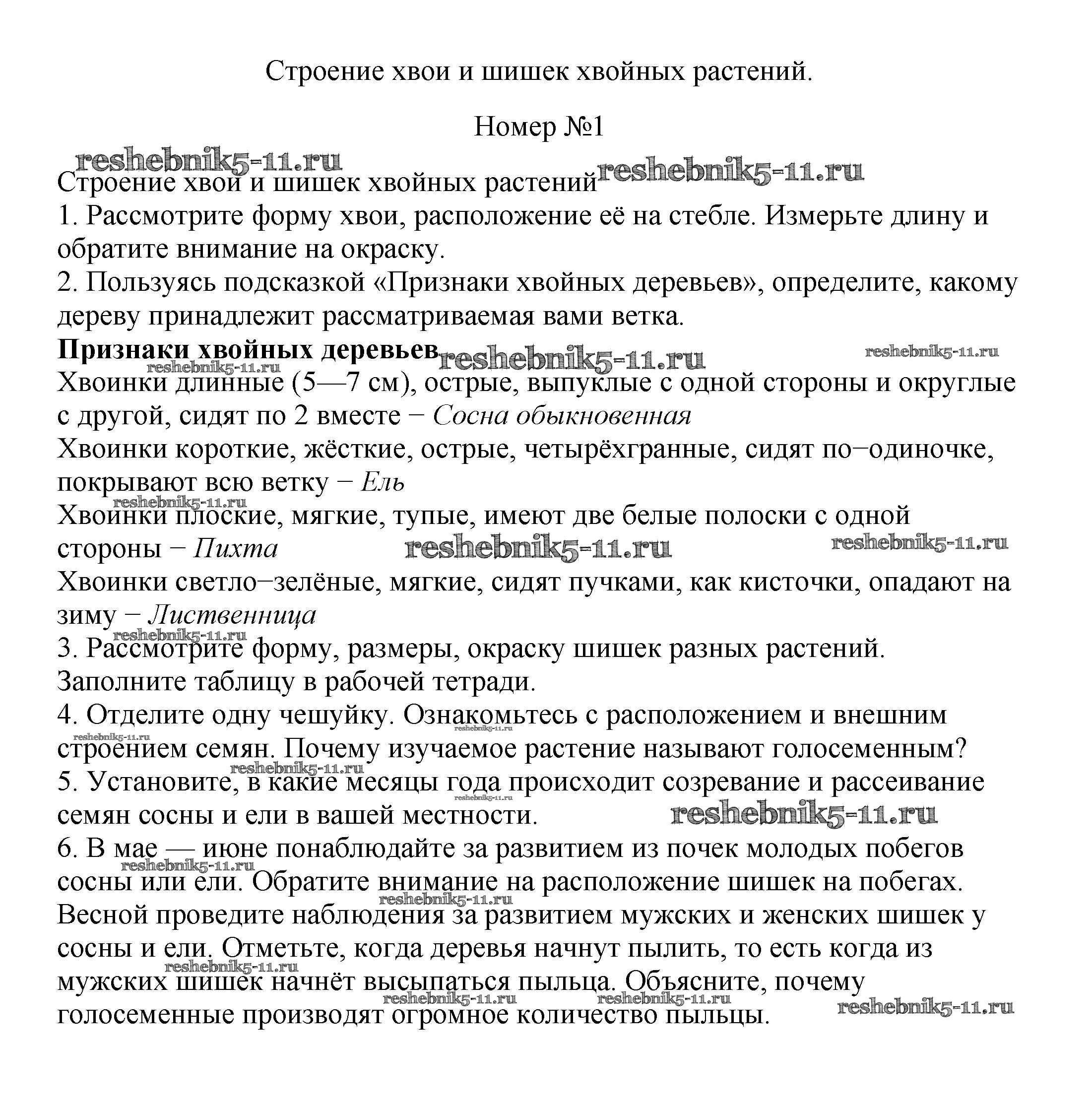 Готовая домашняя работа с ответами по Биологии за 5, 6 класс Пасечник, Суматохин, Калинова, Гапонюк Учебник Линия жизни Просвещение 2020 ФГОС - Строение хвои и шишек хвойных растений 1