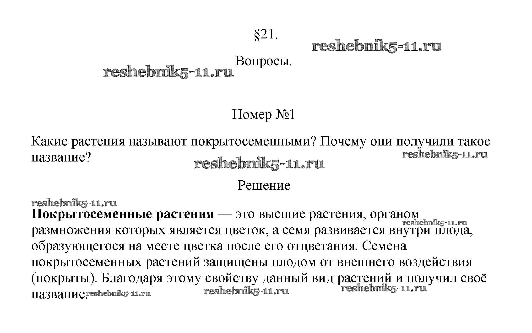 Готовая домашняя работа с ответами по Биологии за 5, 6 класс Пасечник, Суматохин, Калинова, Гапонюк Учебник Линия жизни Просвещение 2020 ФГОС - Вопросы 1