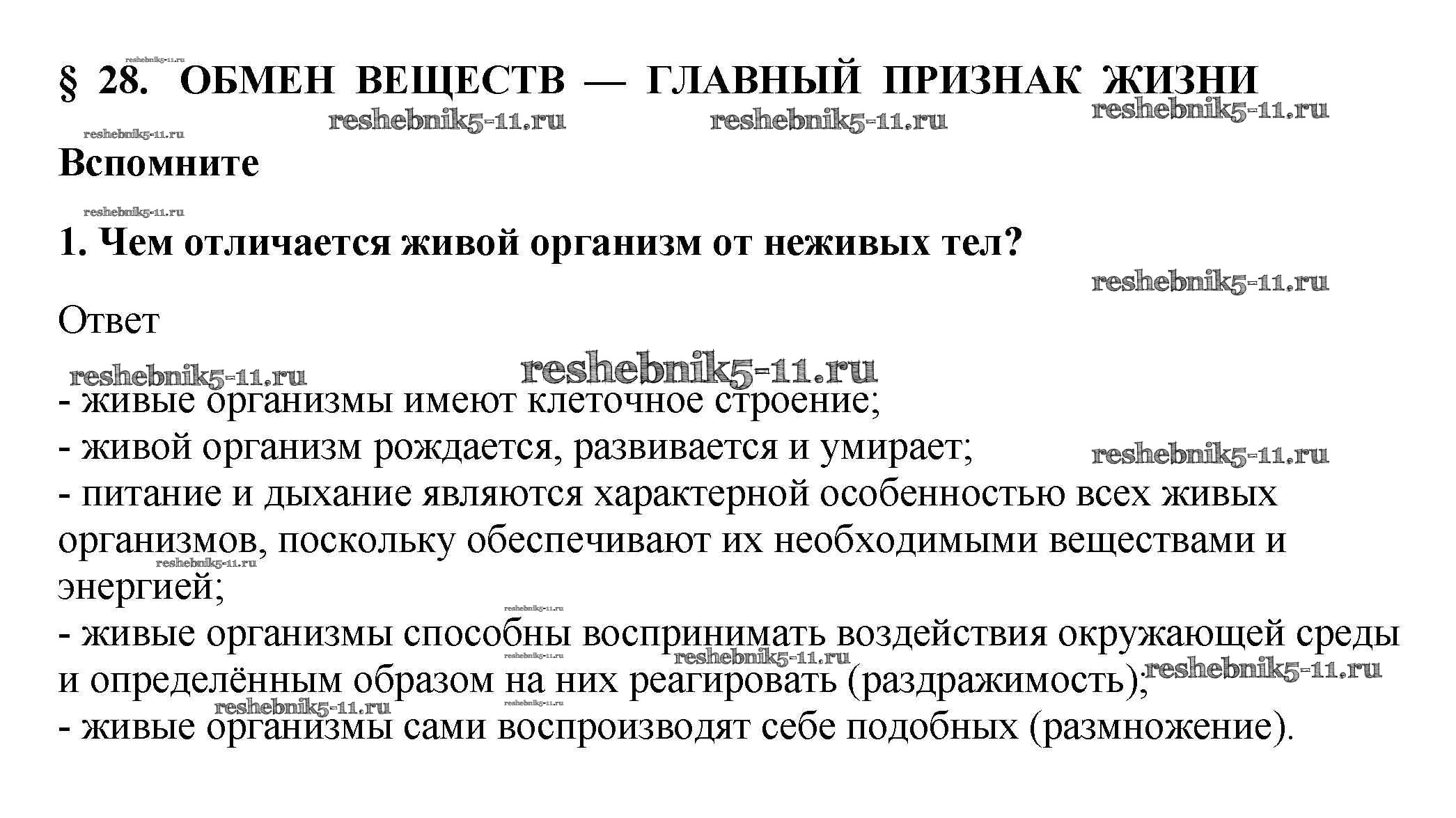 §28. Обмен веществ — главный признак жизни