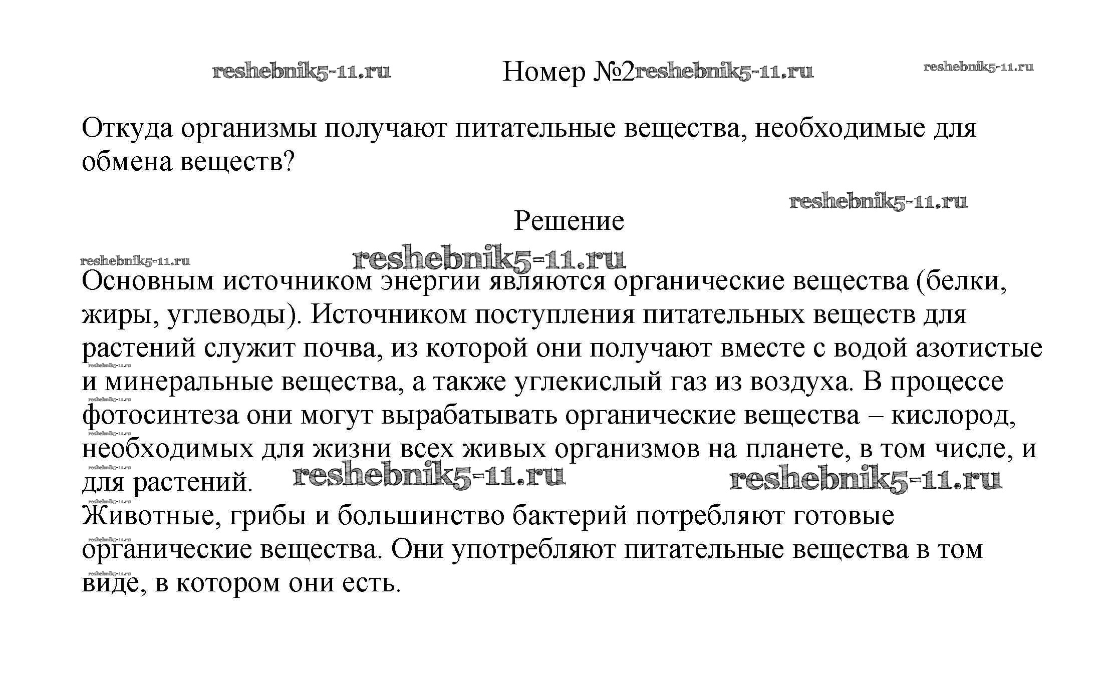 Готовая домашняя работа с ответами по Биологии за 5, 6 класс Пасечник, Суматохин, Калинова, Гапонюк Учебник Линия жизни Просвещение 2020 ФГОС - Вопросы 2