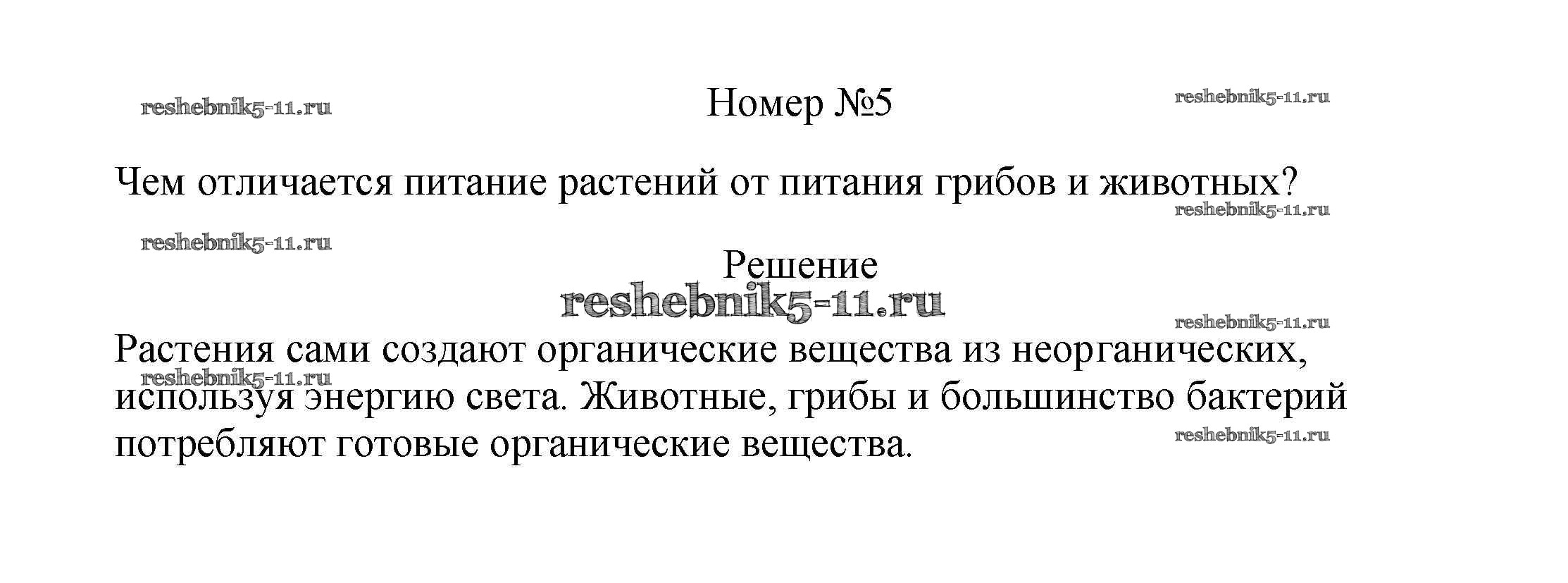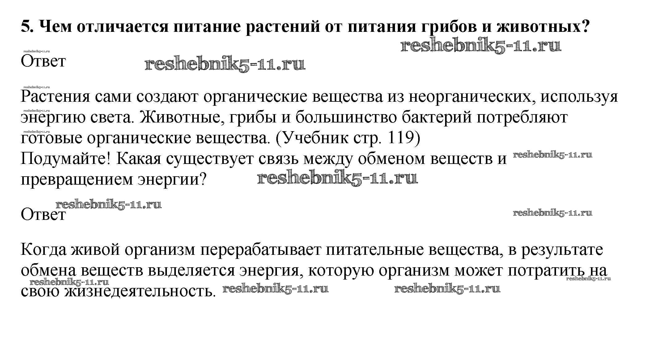 Готовая домашняя работа с ответами по Биологии за 5, 6 класс Пасечник, Суматохин, Калинова, Гапонюк Учебник Линия жизни Просвещение 2020 ФГОС - Вопросы 5