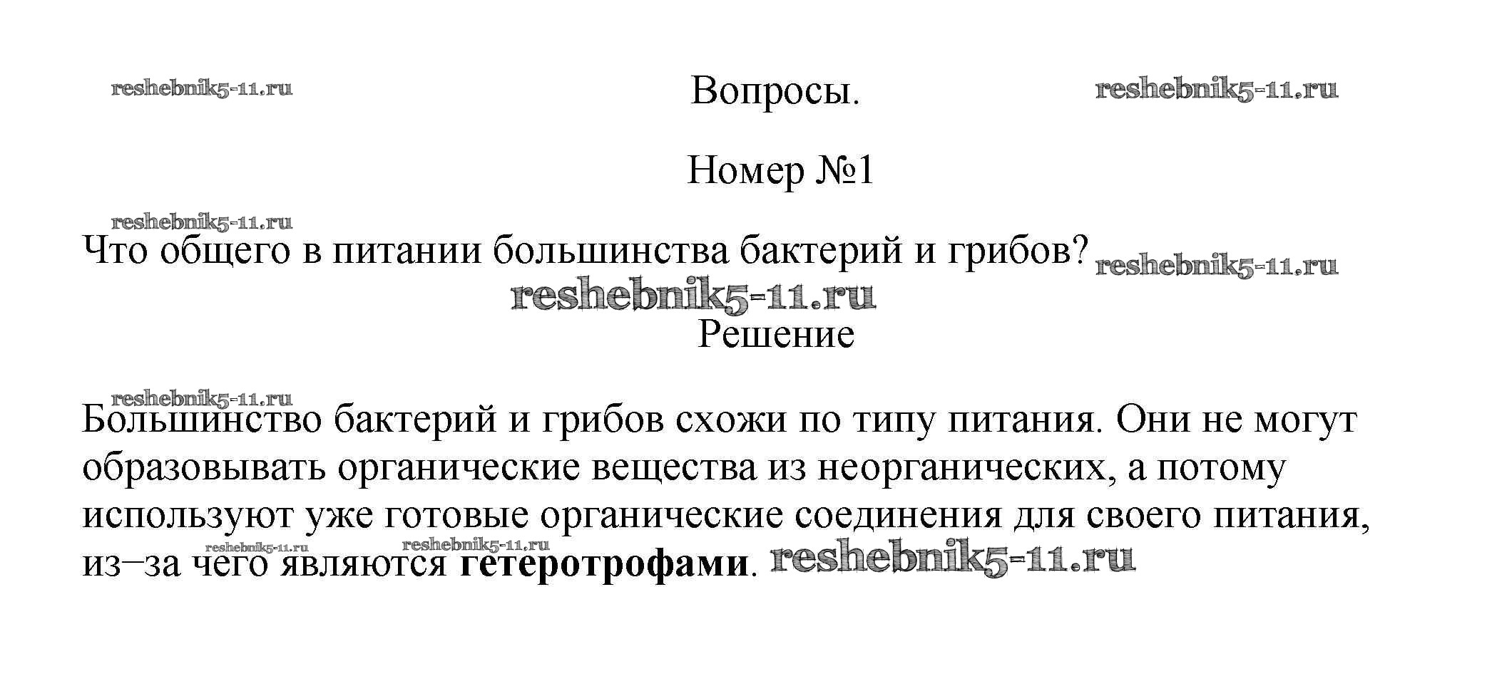 Готовая домашняя работа с ответами по Биологии за 5, 6 класс Пасечник, Суматохин, Калинова, Гапонюк Учебник Линия жизни Просвещение 2020 ФГОС - Вопросы 1