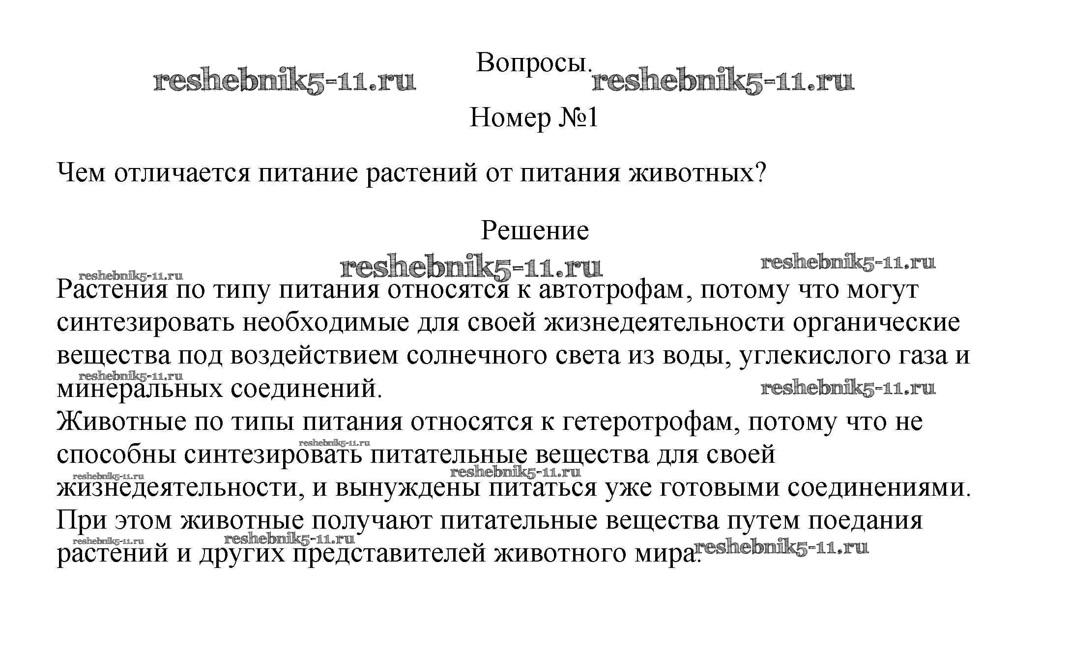 Готовая домашняя работа с ответами по Биологии за 5, 6 класс Пасечник, Суматохин, Калинова, Гапонюк Учебник Линия жизни Просвещение 2020 ФГОС - Вопросы 1