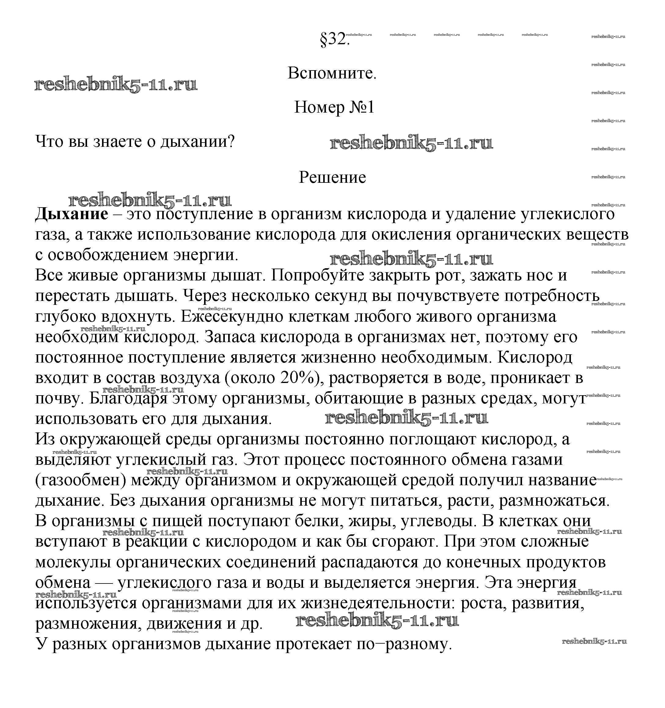 Готовая домашняя работа с ответами по Биологии за 5, 6 класс Пасечник, Суматохин, Калинова, Гапонюк Учебник Линия жизни Просвещение 2020 ФГОС - Вспомните 1