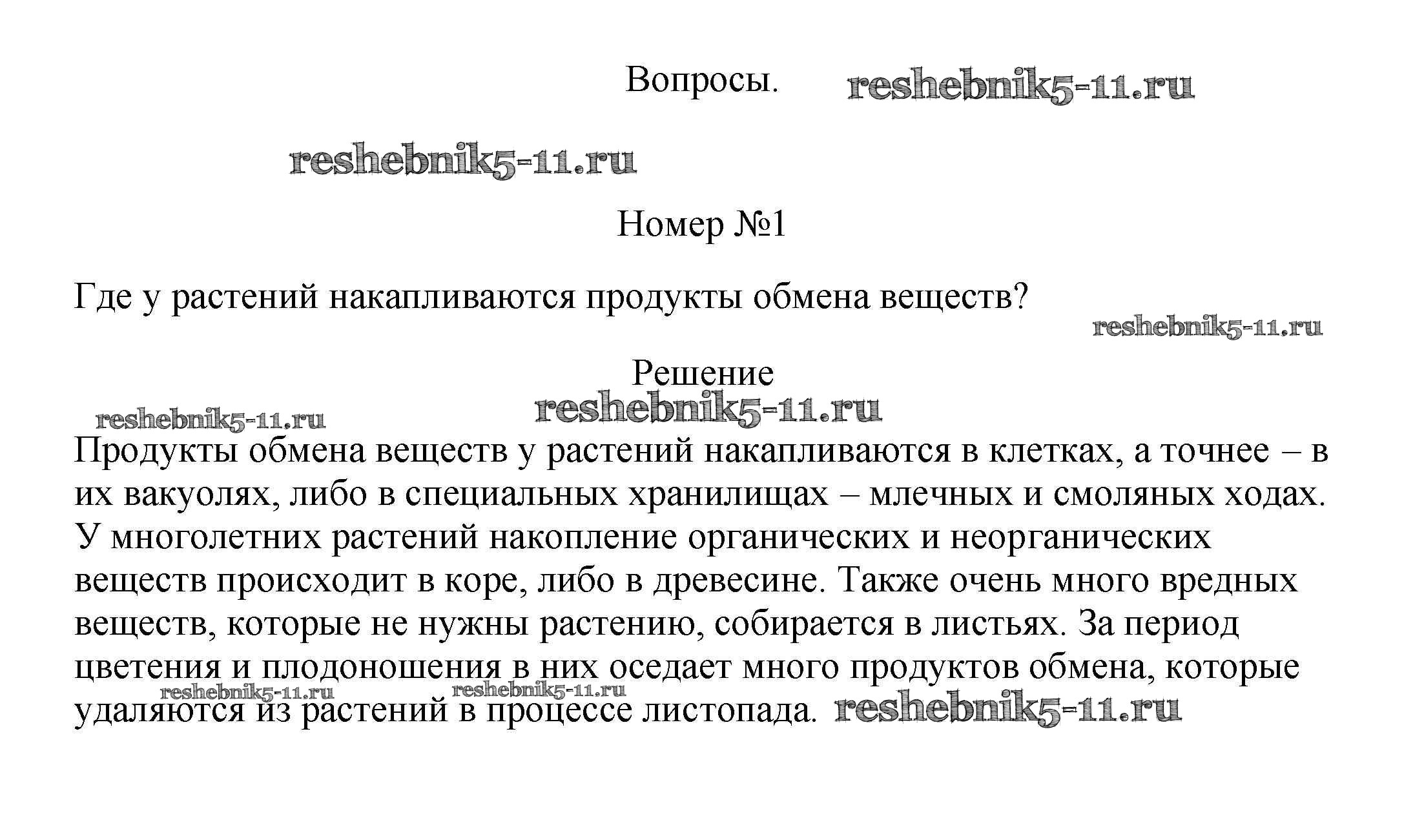 Готовая домашняя работа с ответами по Биологии за 5, 6 класс Пасечник, Суматохин, Калинова, Гапонюк Учебник Линия жизни Просвещение 2020 ФГОС - Вопросы 1