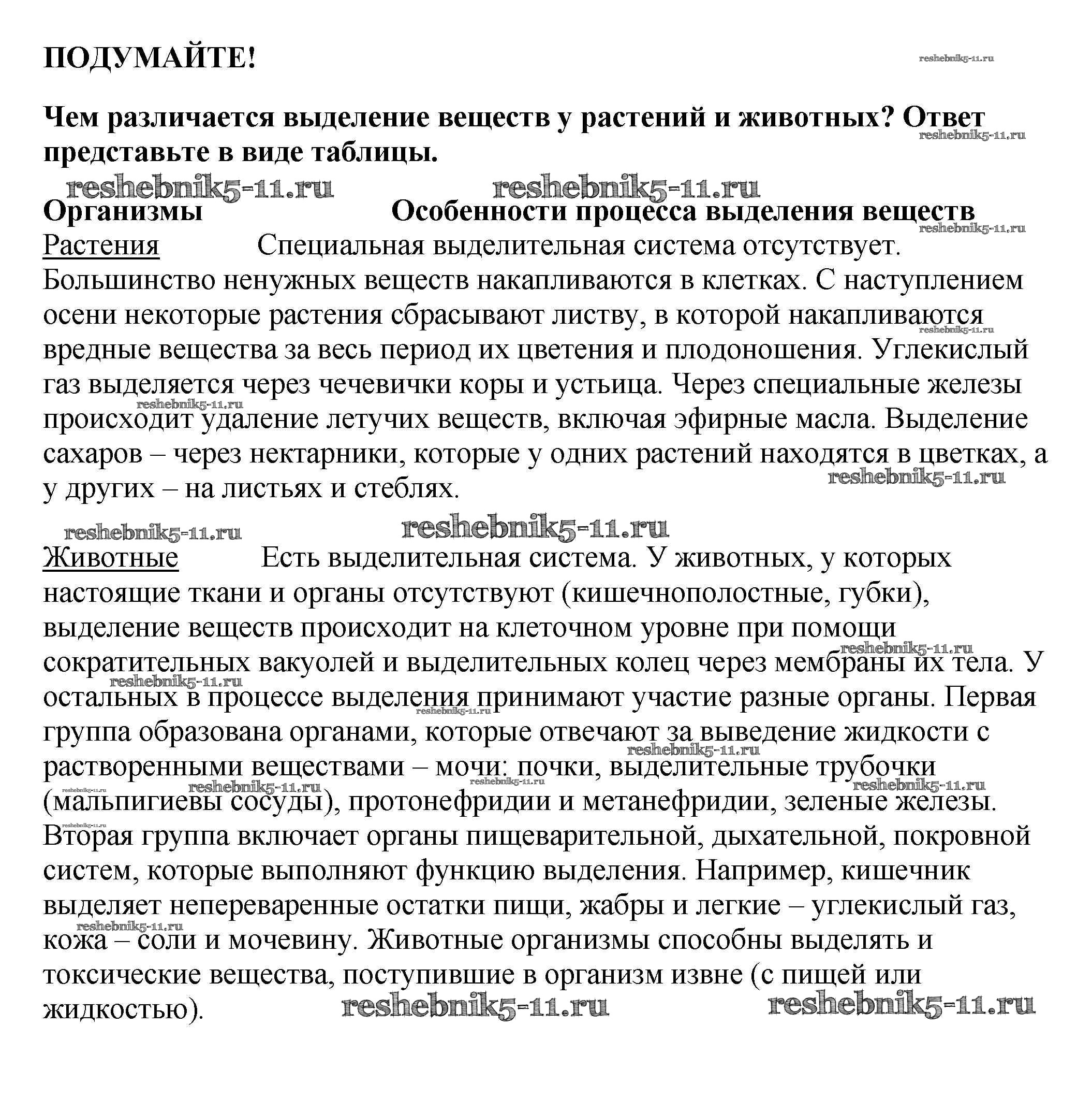 Готовая домашняя работа с ответами по Биологии за 5, 6 класс Пасечник, Суматохин, Калинова, Гапонюк Учебник Линия жизни Просвещение 2020 ФГОС - Подумайте 1