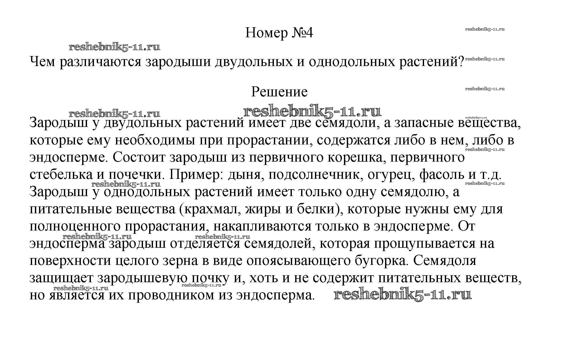 Готовая домашняя работа с ответами по Биологии за 5, 6 класс Пасечник, Суматохин, Калинова, Гапонюк Учебник Линия жизни Просвещение 2020 ФГОС - Вопросы 4