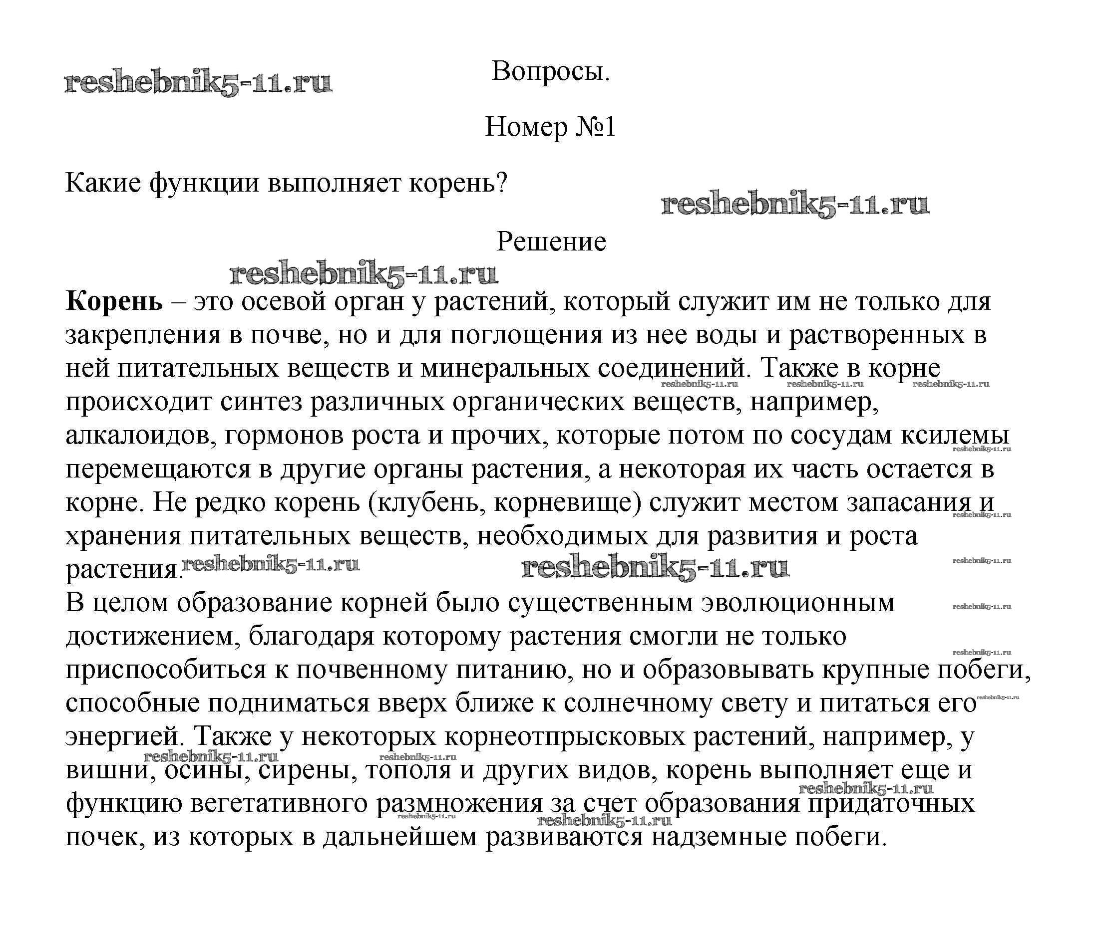 Готовая домашняя работа с ответами по Биологии за 5, 6 класс Пасечник, Суматохин, Калинова, Гапонюк Учебник Линия жизни Просвещение 2020 ФГОС - Вопросы 1