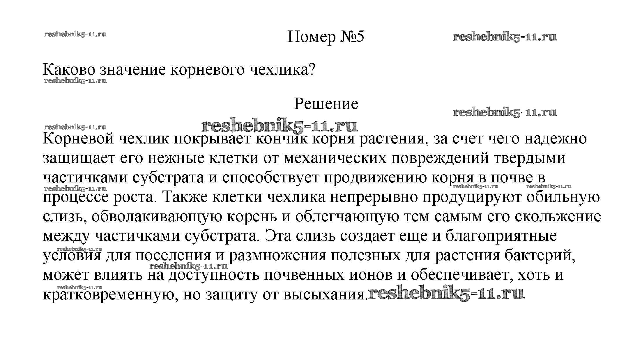 Готовая домашняя работа с ответами по Биологии за 5, 6 класс Пасечник, Суматохин, Калинова, Гапонюк Учебник Линия жизни Просвещение 2020 ФГОС - Вопросы 5
