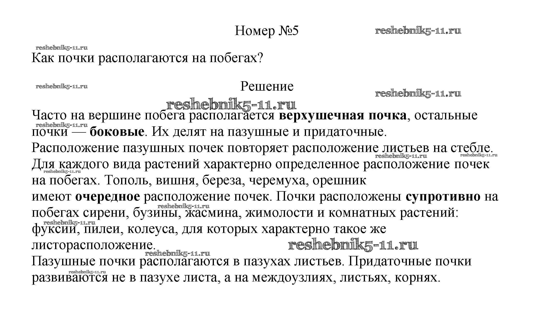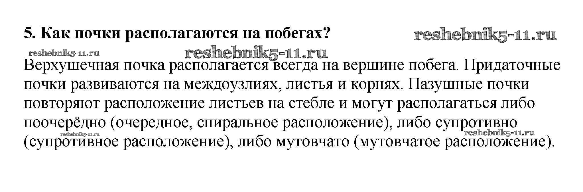 Готовая домашняя работа с ответами по Биологии за 5, 6 класс Пасечник, Суматохин, Калинова, Гапонюк Учебник Линия жизни Просвещение 2020 ФГОС - Вопросы 5