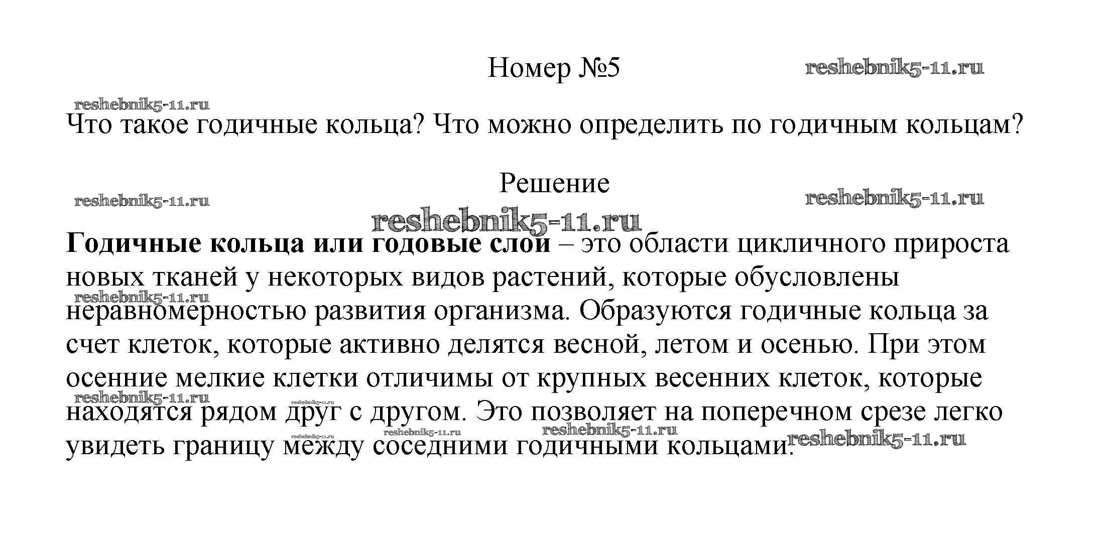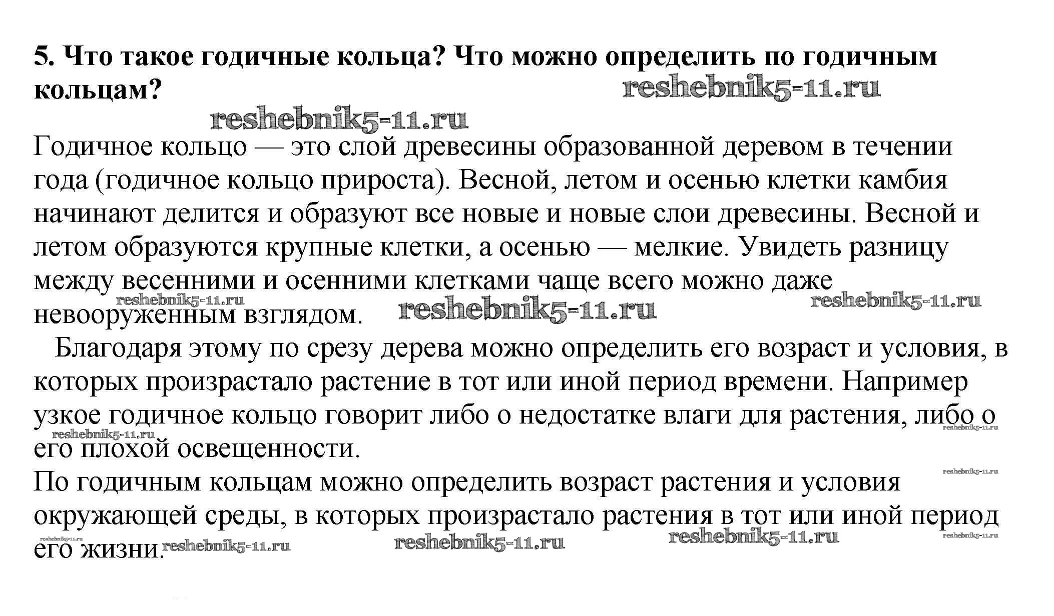 Готовая домашняя работа с ответами по Биологии за 5, 6 класс Пасечник, Суматохин, Калинова, Гапонюк Учебник Линия жизни Просвещение 2020 ФГОС - Вопросы 5
