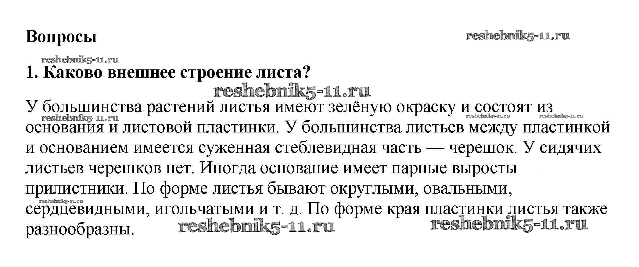 Готовая домашняя работа с ответами по Биологии за 5, 6 класс Пасечник, Суматохин, Калинова, Гапонюк Учебник Линия жизни Просвещение 2020 ФГОС - Вопросы 1