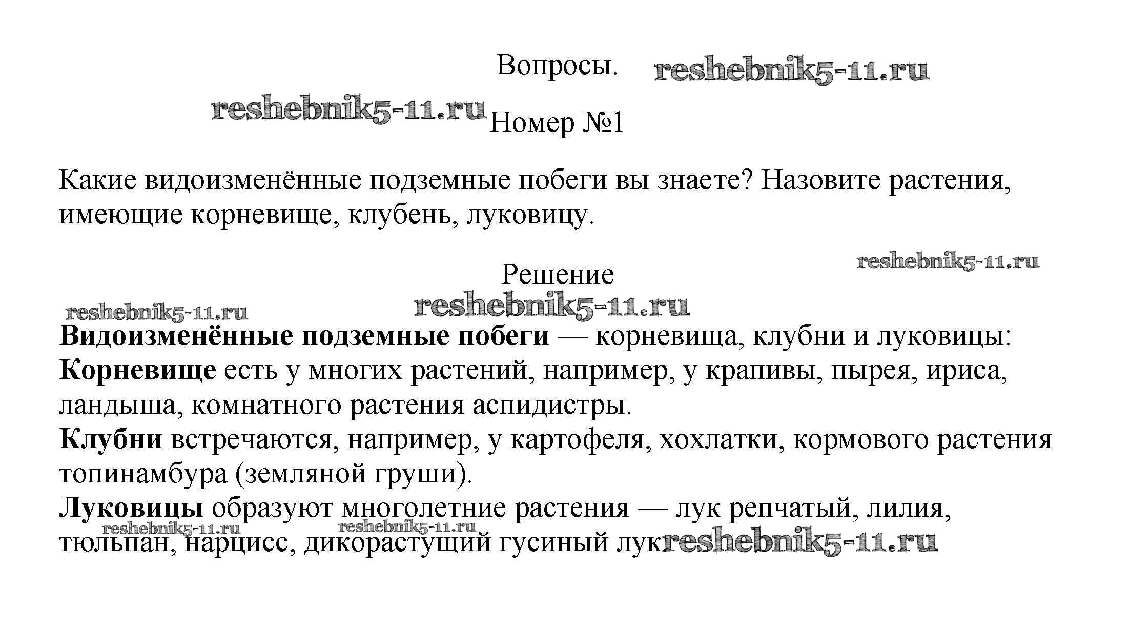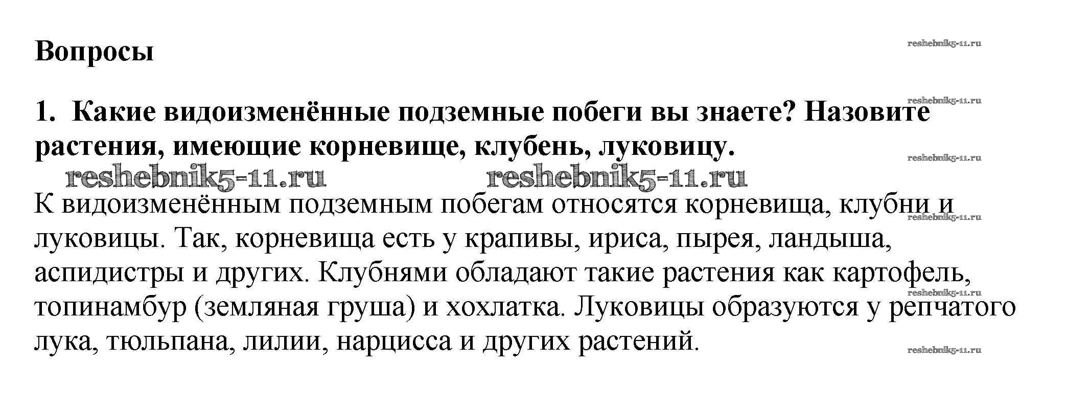 Готовая домашняя работа с ответами по Биологии за 5, 6 класс Пасечник, Суматохин, Калинова, Гапонюк Учебник Линия жизни Просвещение 2020 ФГОС - Вопросы 1