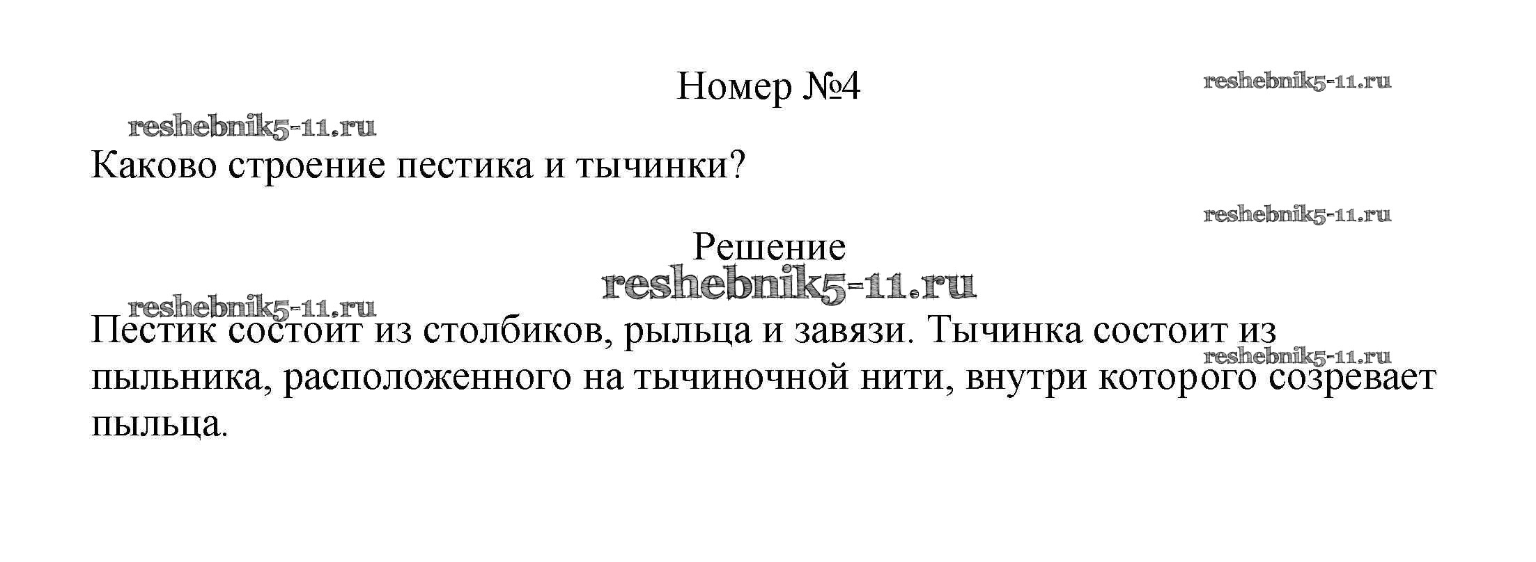 Готовая домашняя работа с ответами по Биологии за 5, 6 класс Пасечник, Суматохин, Калинова, Гапонюк Учебник Линия жизни Просвещение 2020 ФГОС - Вопросы 4