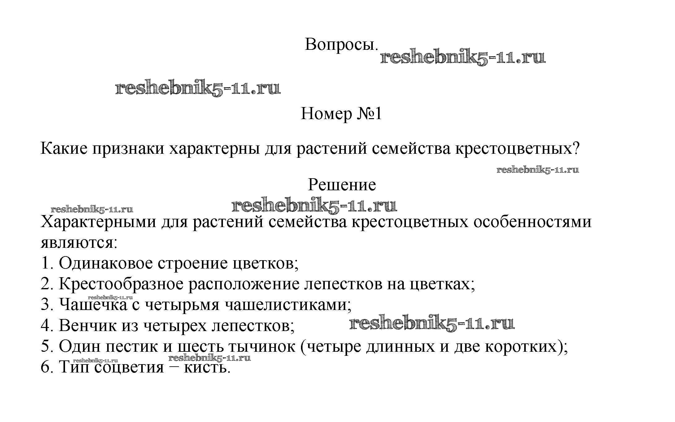 Готовая домашняя работа с ответами по Биологии за 5, 6 класс Пасечник, Суматохин, Калинова, Гапонюк Учебник Линия жизни Просвещение 2020 ФГОС - Вопросы 1