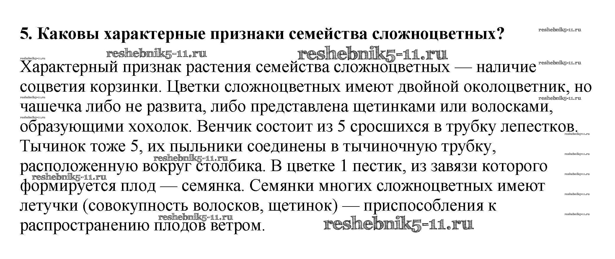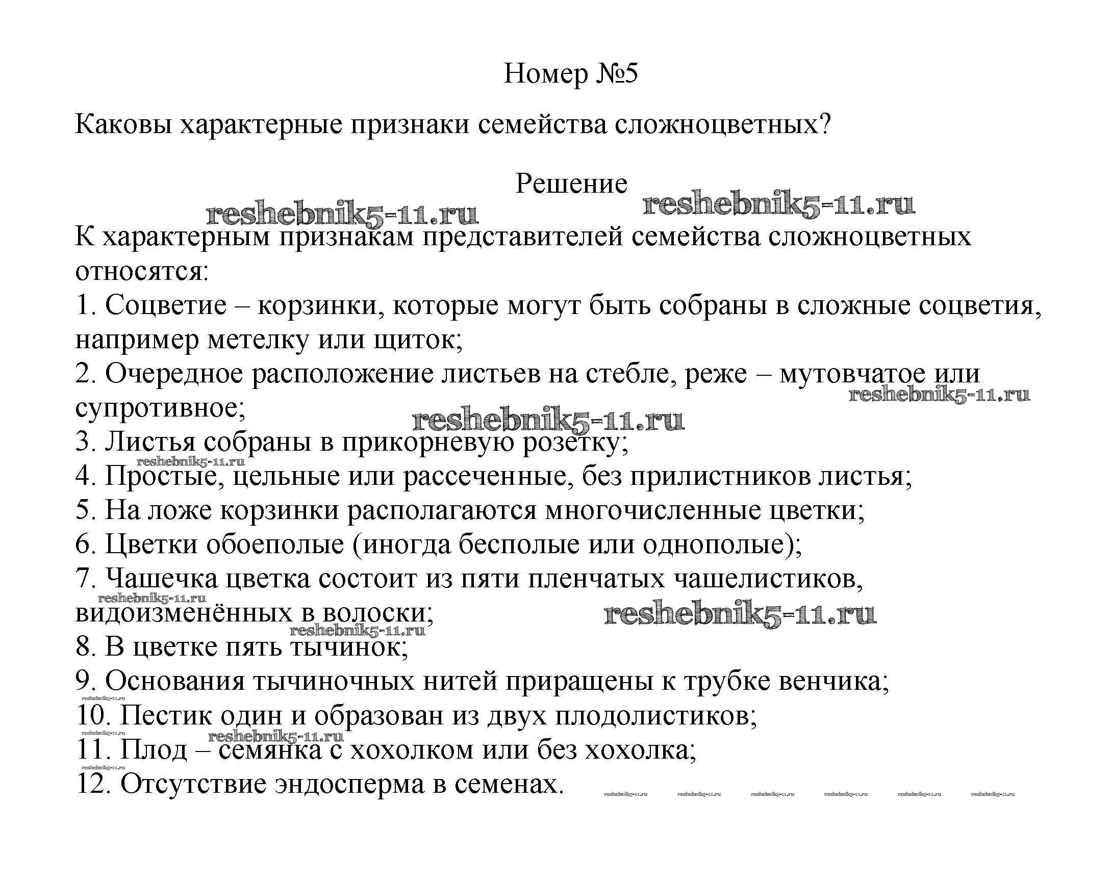 Готовая домашняя работа с ответами по Биологии за 5, 6 класс Пасечник, Суматохин, Калинова, Гапонюк Учебник Линия жизни Просвещение 2020 ФГОС - Вопросы 5