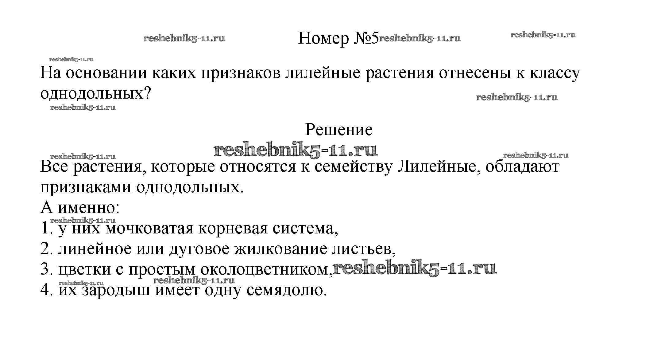 Готовая домашняя работа с ответами по Биологии за 5, 6 класс Пасечник, Суматохин, Калинова, Гапонюк Учебник Линия жизни Просвещение 2020 ФГОС - Вопросы 5