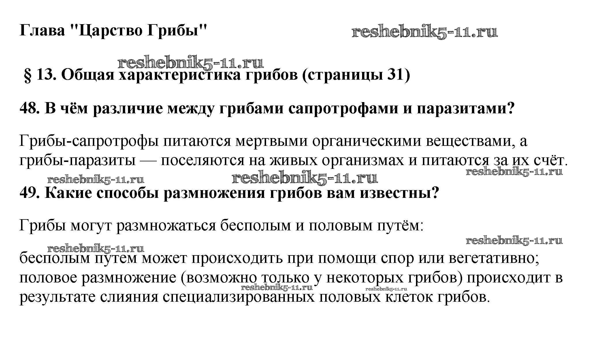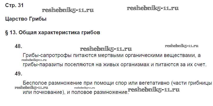 Готовая домашняя работа с ответами по Биологии за 5 класс Пасечник Рабочая тетрадь Вертикаль Дрофа 2015 ФГОС - § 13. Общая характеристика грибов стр. 31