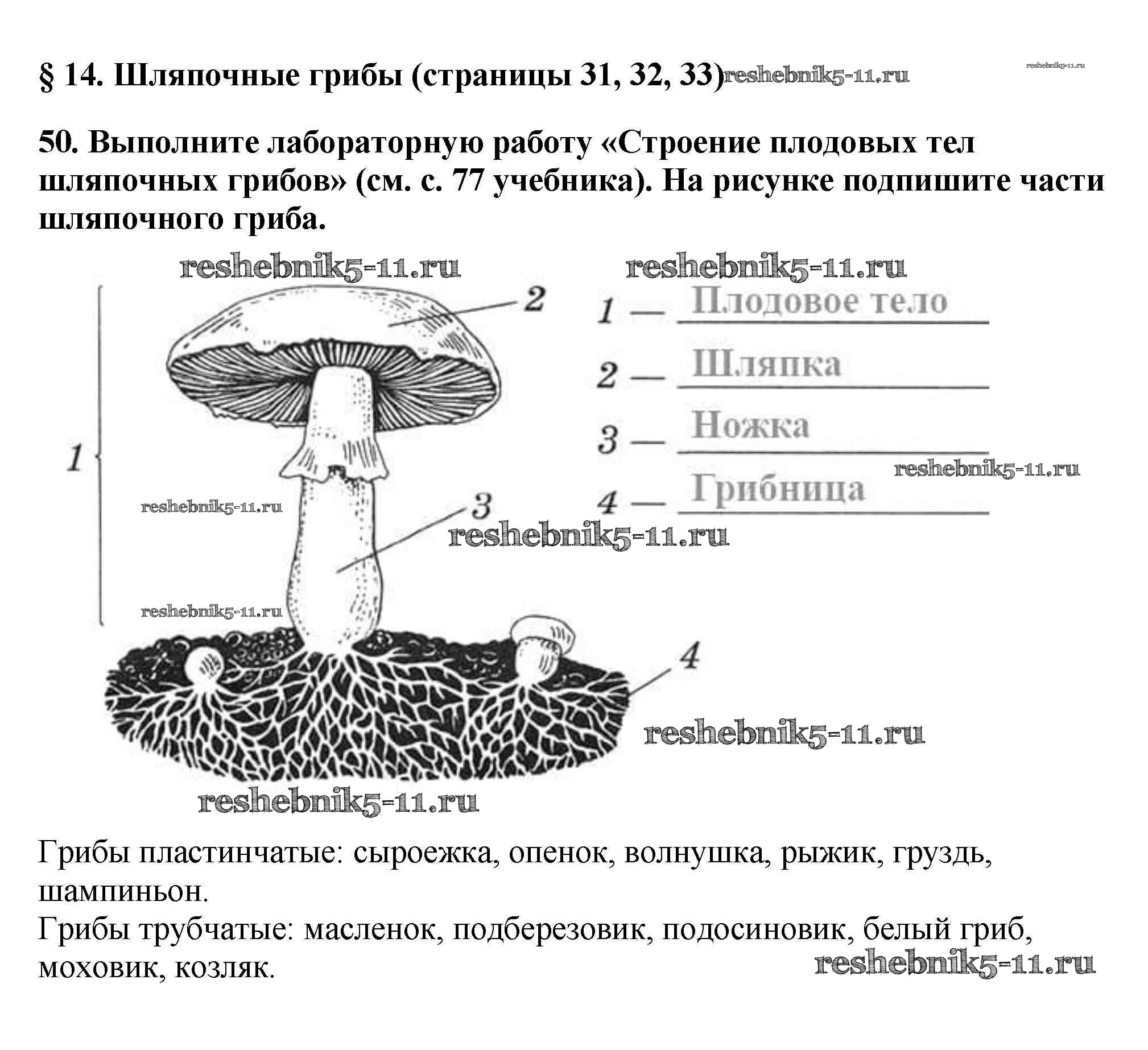 Готовая домашняя работа с ответами по Биологии за 5 класс Пасечник Рабочая тетрадь Вертикаль Дрофа 2015 ФГОС - § 14. Шляпочные грибы стр. 31