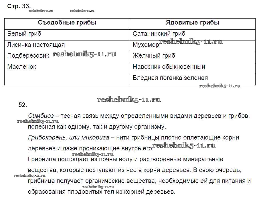 Готовая домашняя работа с ответами по Биологии за 5 класс Пасечник Рабочая тетрадь Вертикаль Дрофа 2015 ФГОС - § 14. Шляпочные грибы стр. 33