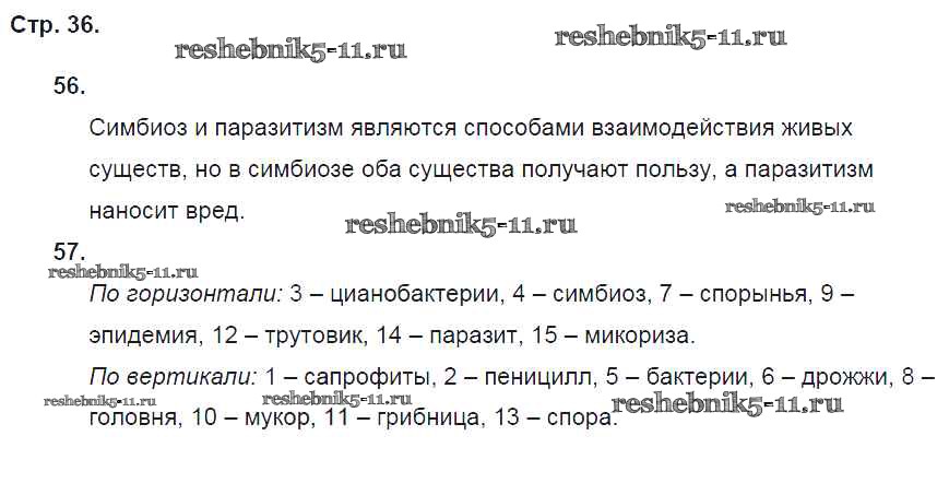 Готовая домашняя работа с ответами по Биологии за 5 класс Пасечник Рабочая тетрадь Вертикаль Дрофа 2015 ФГОС - § 16. Грибы-паразиты стр. 36