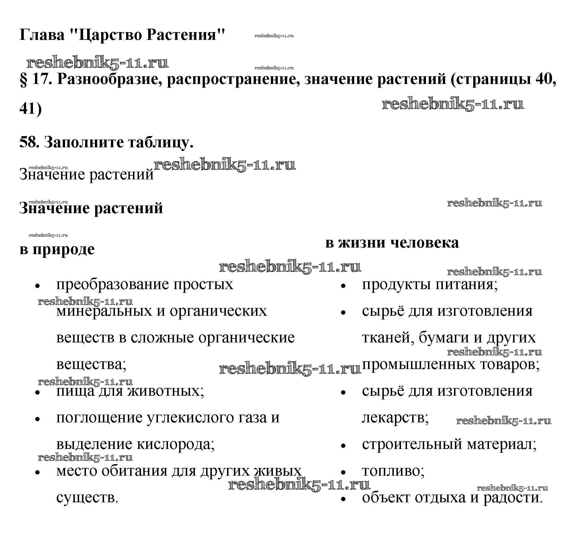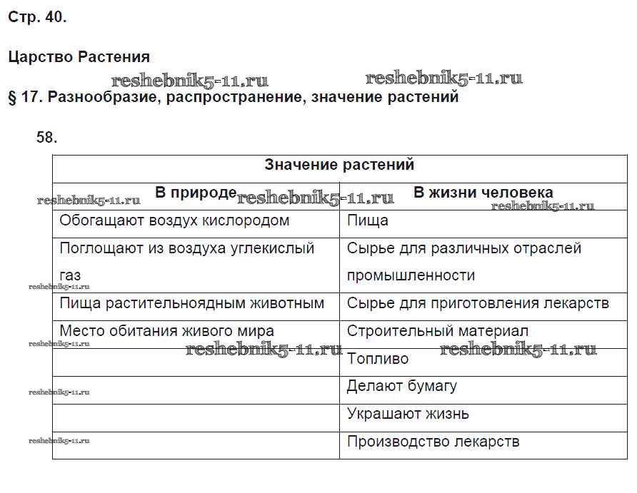 Готовая домашняя работа с ответами по Биологии за 5 класс Пасечник Рабочая тетрадь Вертикаль Дрофа 2015 ФГОС - § 17. Разнообразие, распространение, значение растений стр. 40
