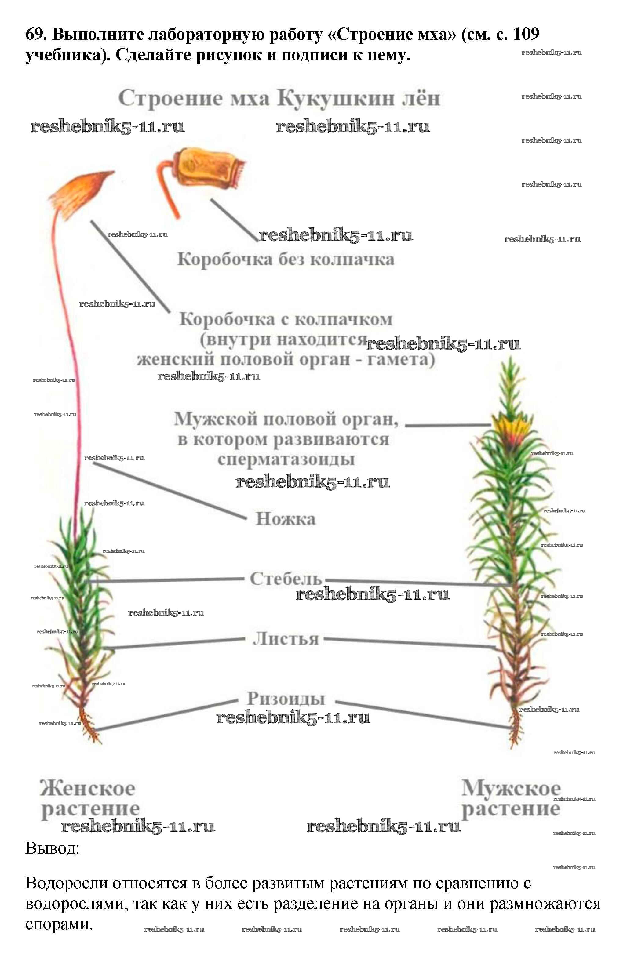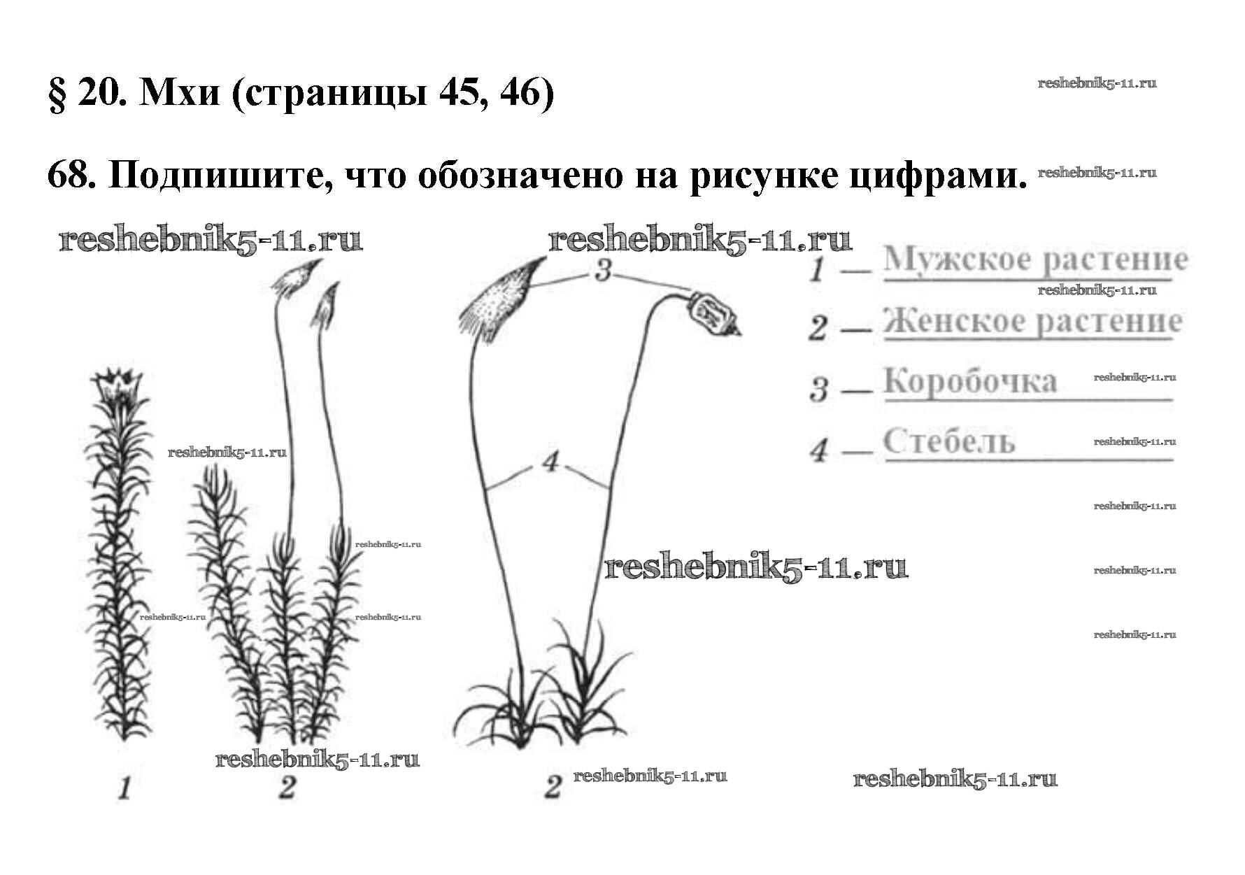 Готовая домашняя работа с ответами по Биологии за 5 класс Пасечник Рабочая тетрадь Вертикаль Дрофа 2015 ФГОС - § 20. Мхи стр. 45
