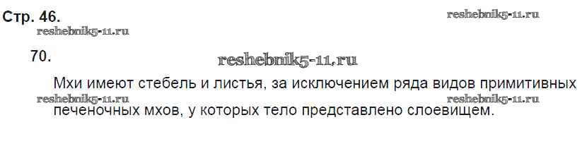 Готовая домашняя работа с ответами по Биологии за 5 класс Пасечник Рабочая тетрадь Вертикаль Дрофа 2015 ФГОС - § 20. Мхи стр. 46