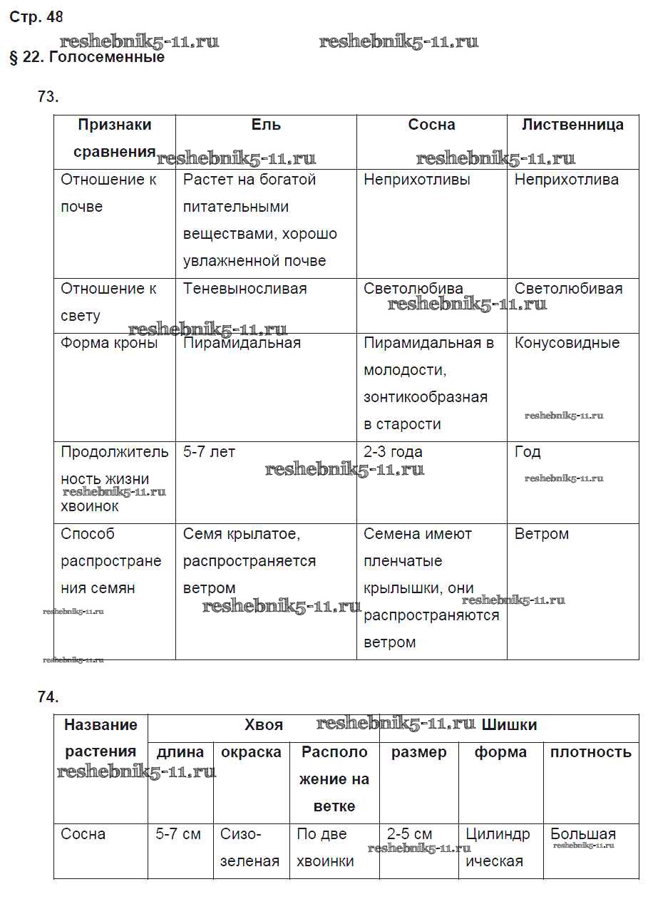 Готовая домашняя работа с ответами по Биологии за 5 класс Пасечник Рабочая тетрадь Вертикаль Дрофа 2015 ФГОС - § 22. Голосеменные стр. 48