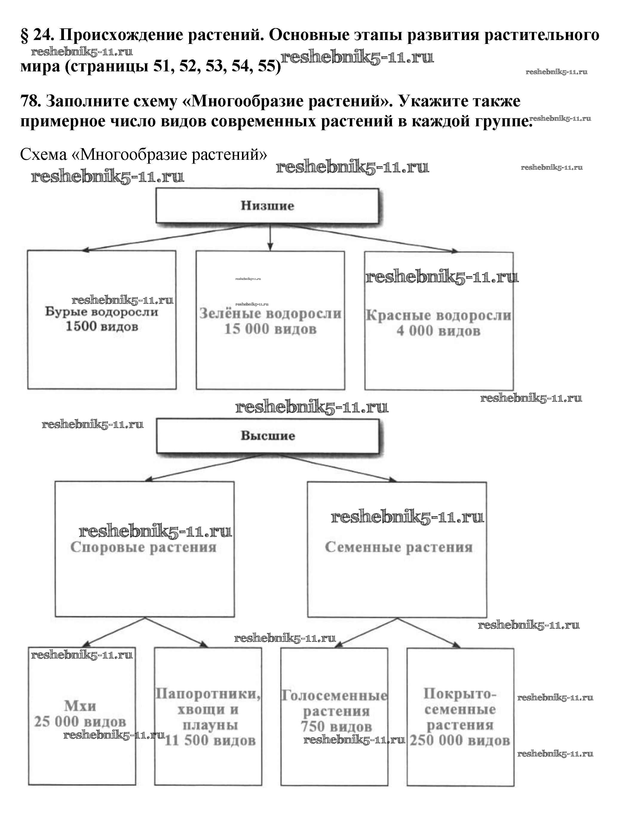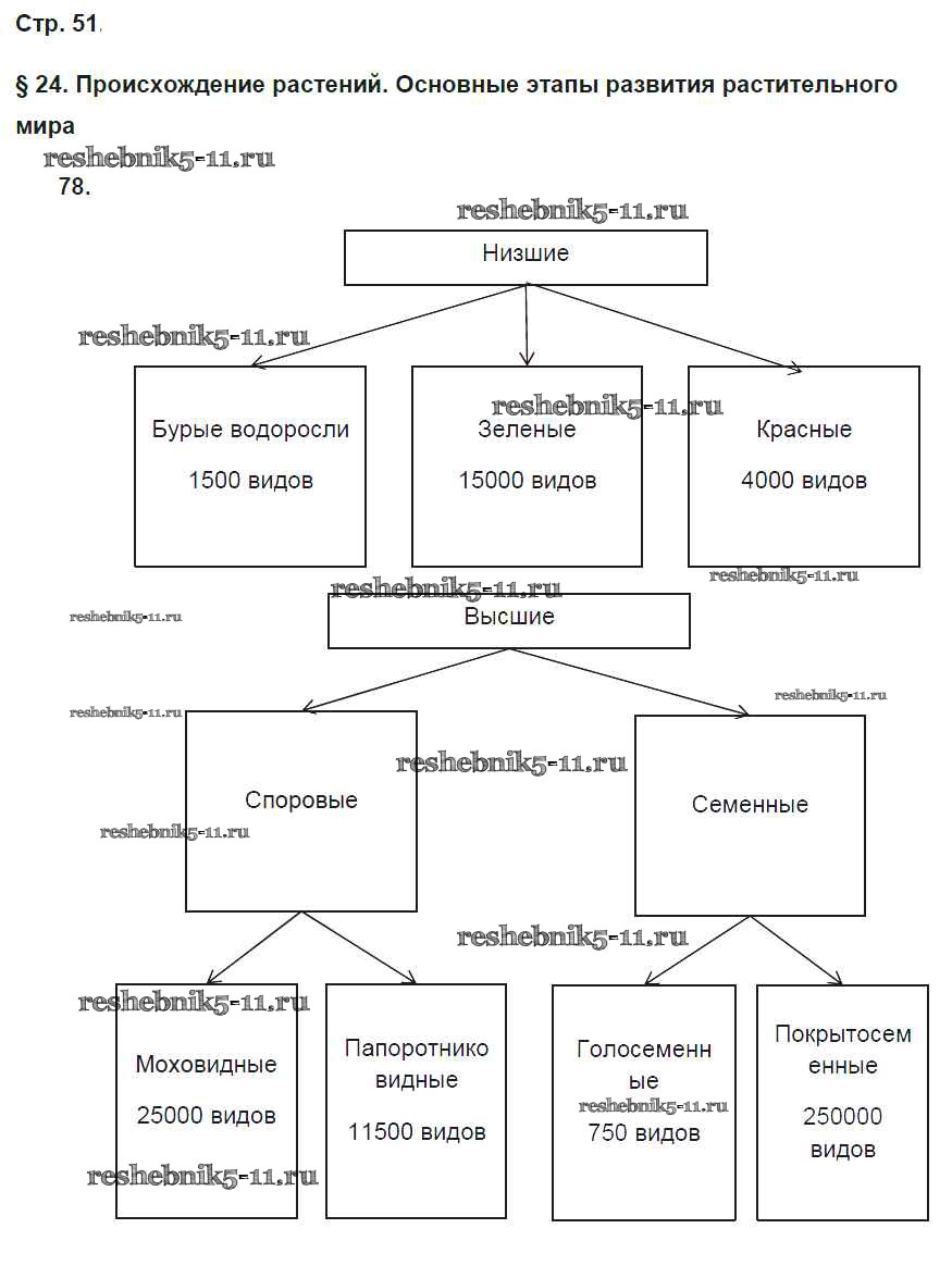 Готовая домашняя работа с ответами по Биологии за 5 класс Пасечник Рабочая тетрадь Вертикаль Дрофа 2015 ФГОС - § 24. Происхождение растений. Основные этапы развития растительного мира стр. 51